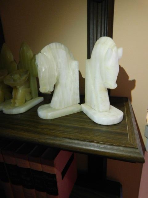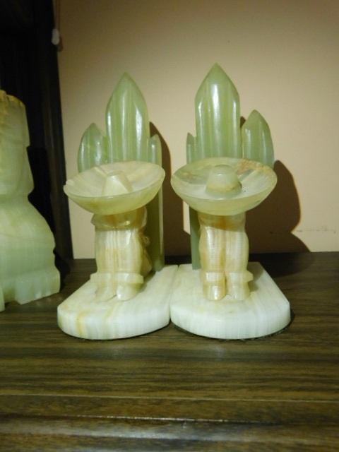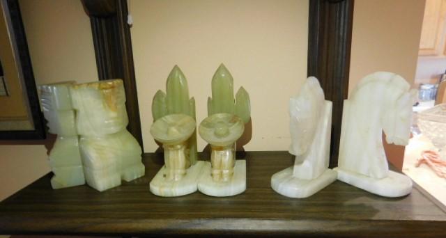 Set of Three Cut Stone Book Ends Aztec Gods, Siesta Men, Horse Heads