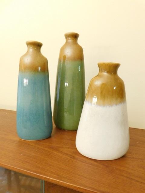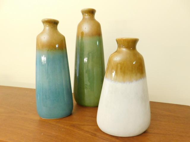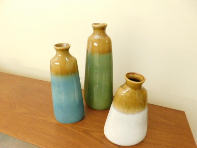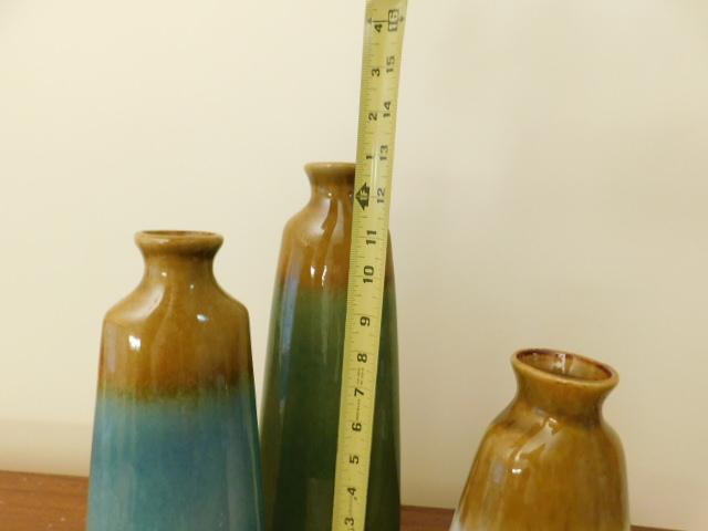 Set of Three Drip Glaze Pottery Vases Various Sizes