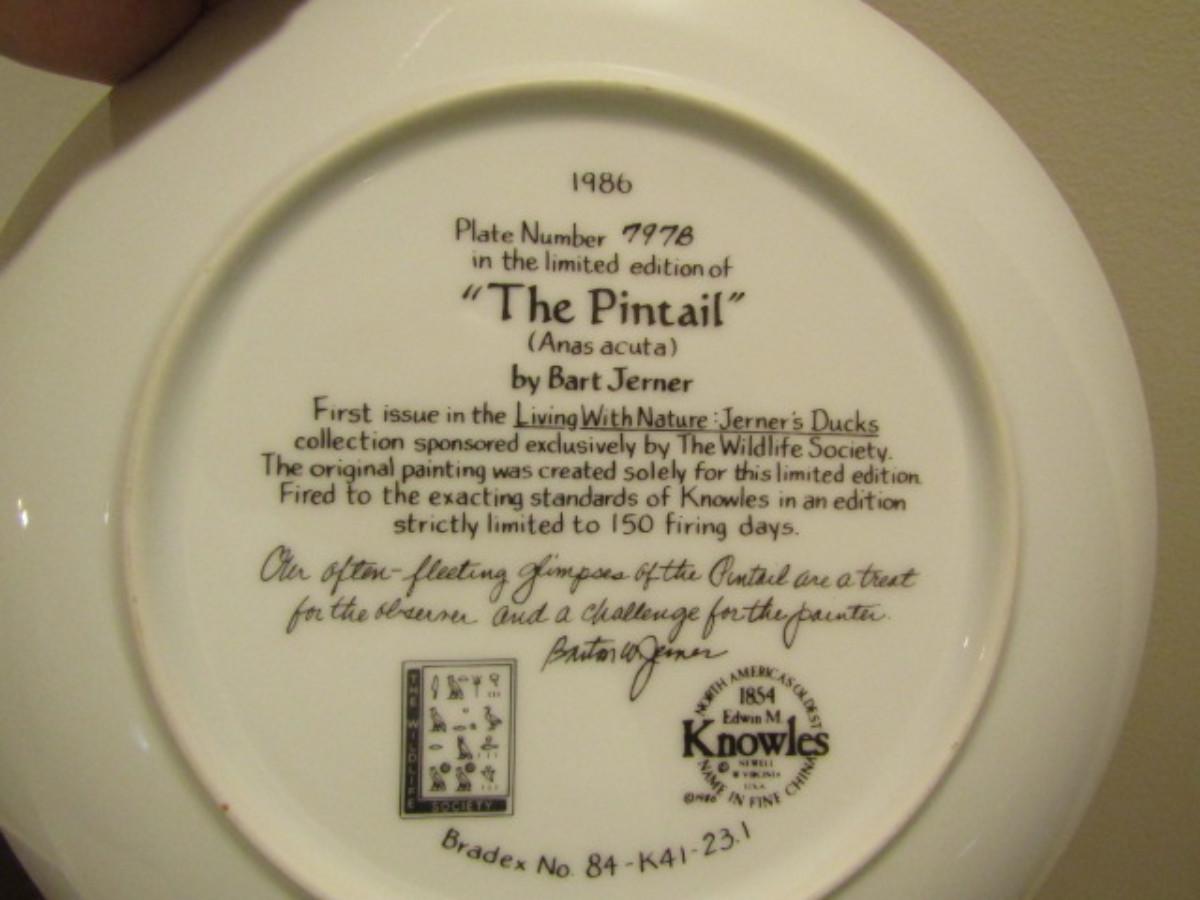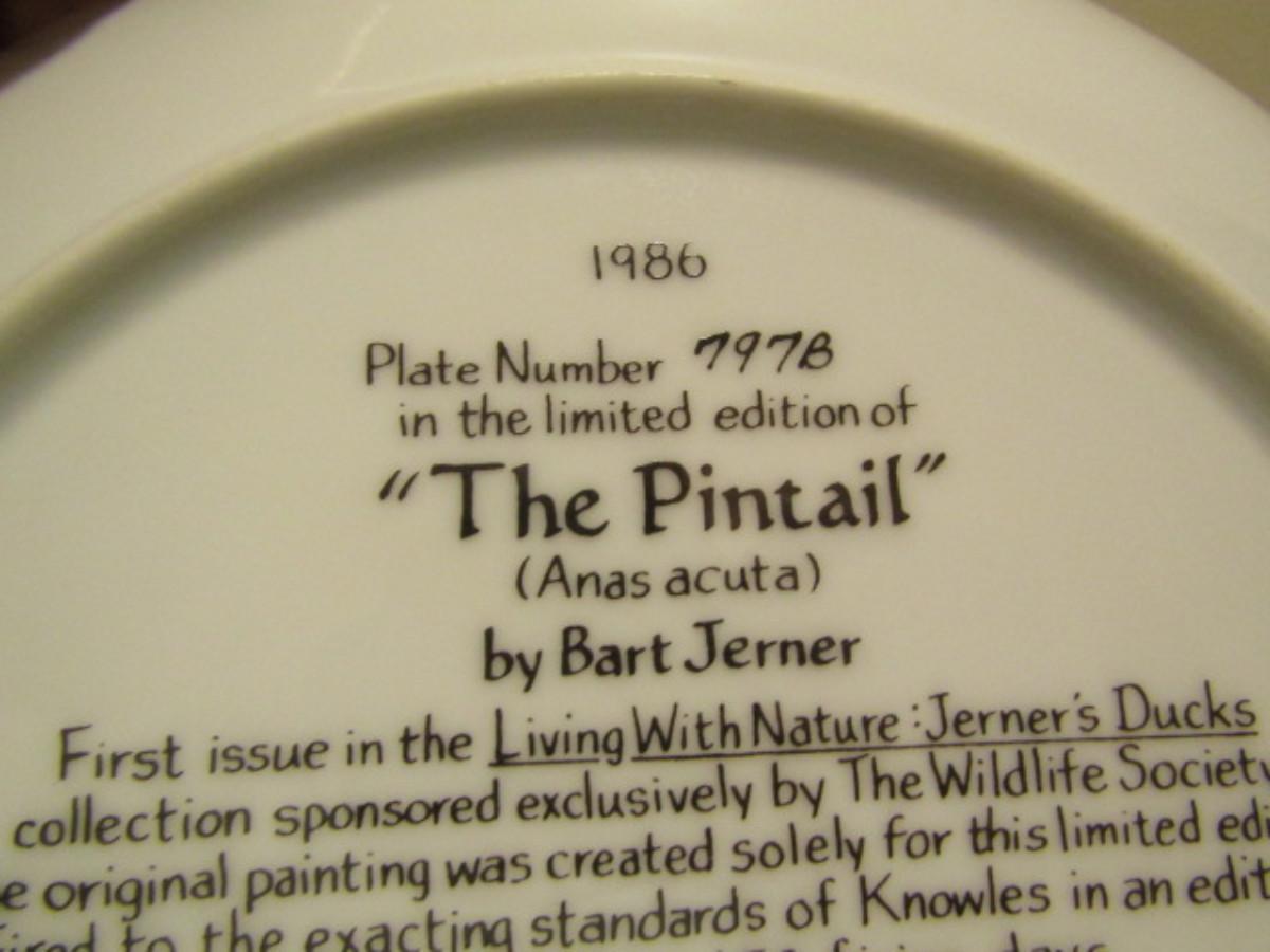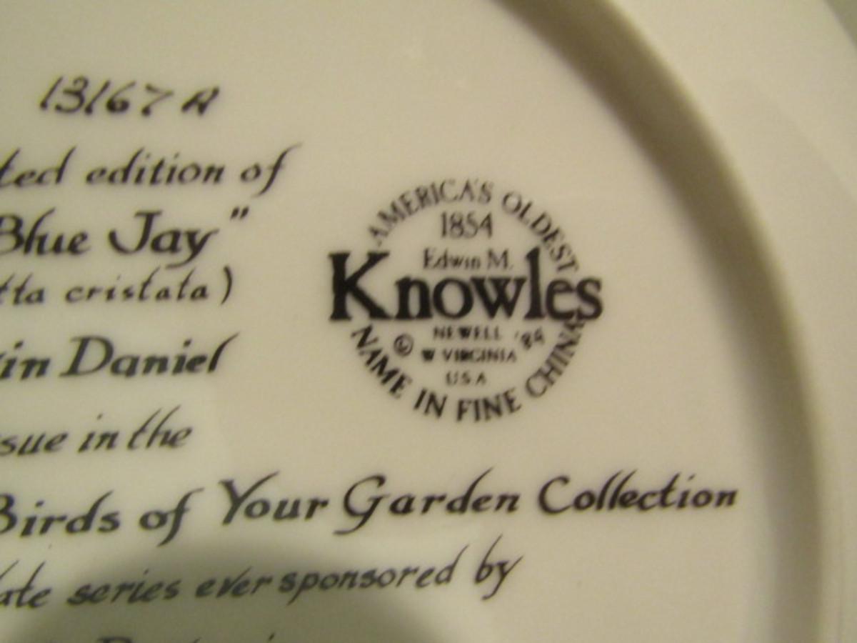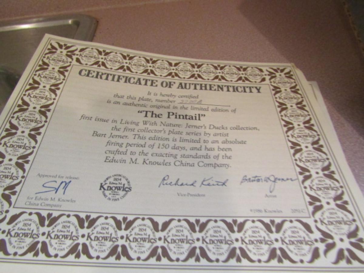 Set of Three Edwin Knowles Collectible Plates with COAs- Bird Designs. Cardinal, Blue Jay, and Pintail.