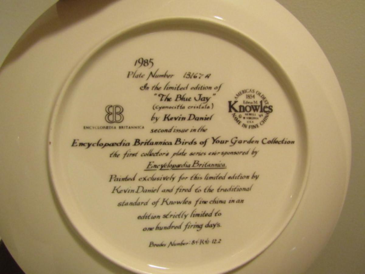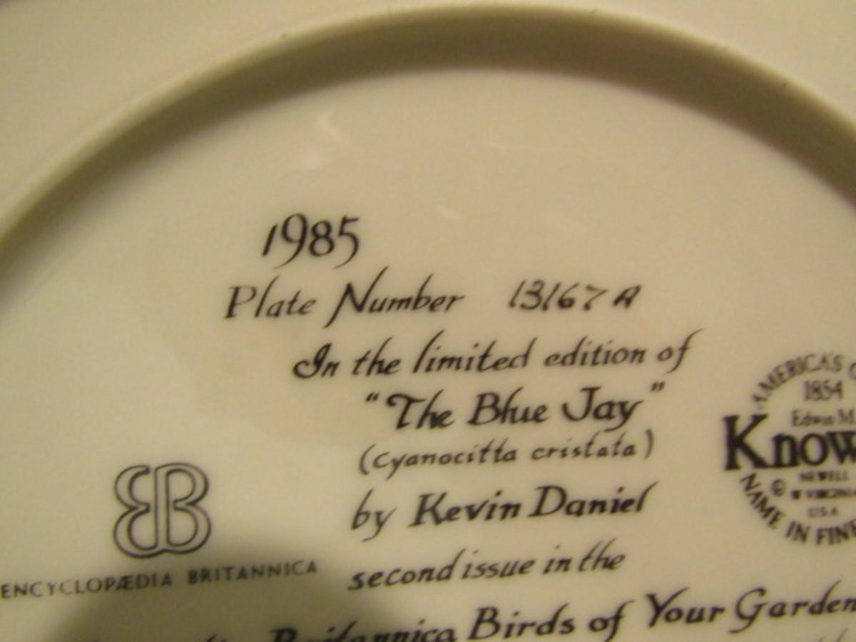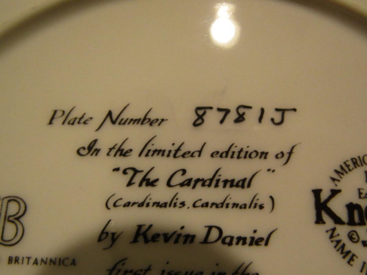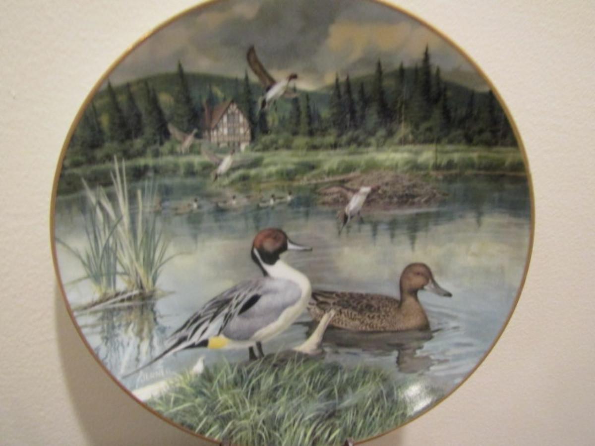 Set of Three Edwin Knowles Collectible Plates with COAs- Bird Designs. Cardinal, Blue Jay, and Pintail.