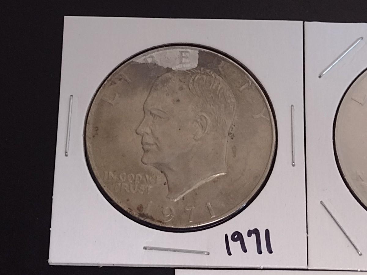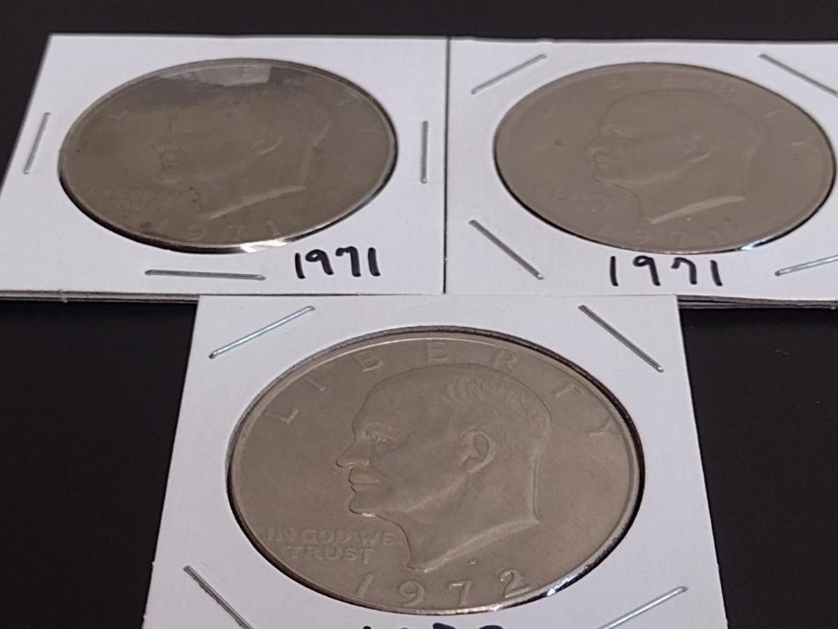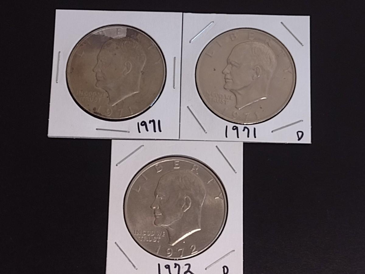 Set of Three Eisenhower Silver Dollars 1971, 1971-D and 1972-D Circulated (10)