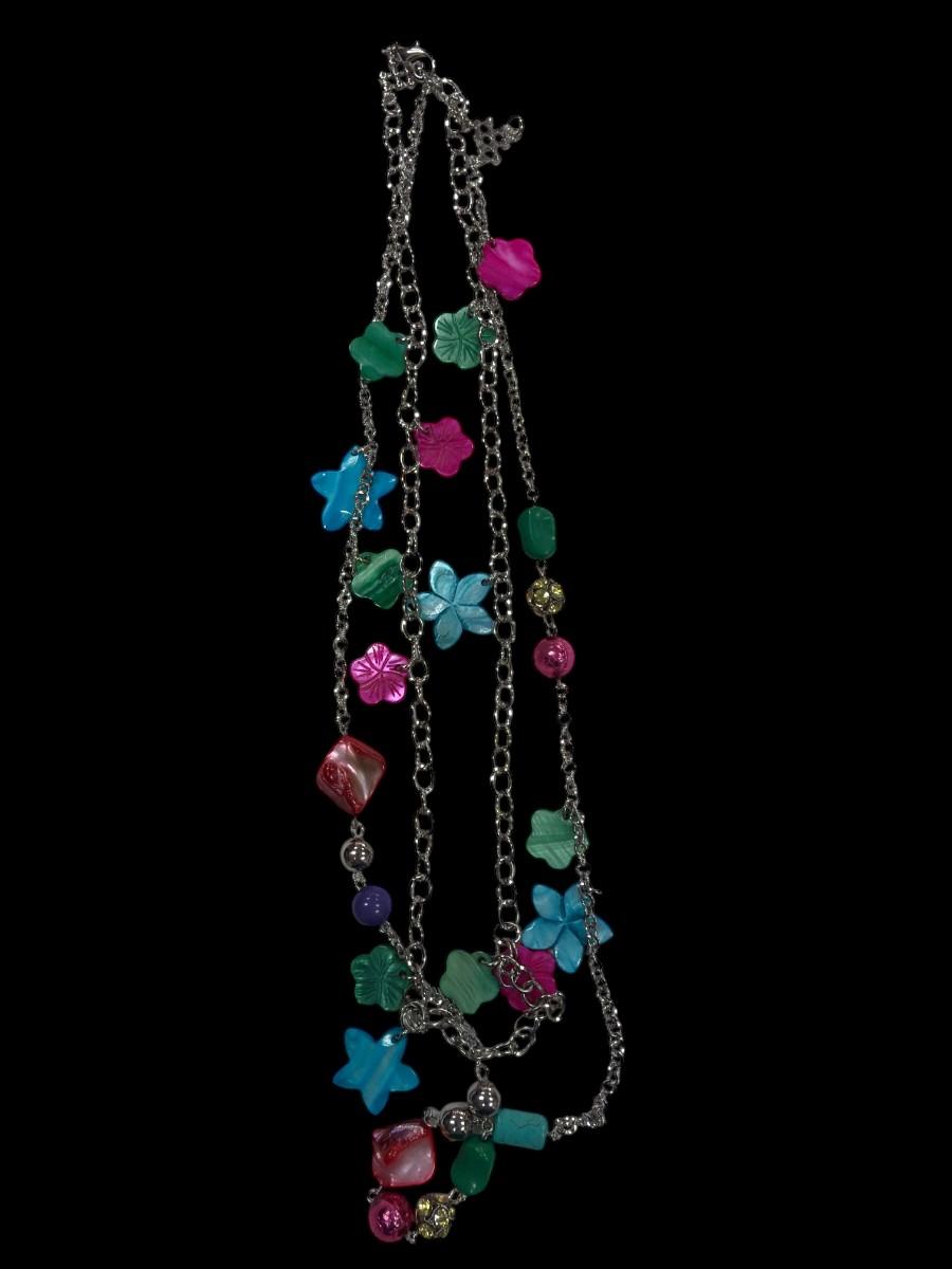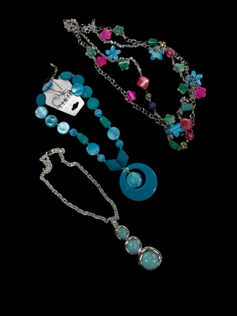 Set of Three Fashion Necklaces with Colorful Beads and Metal Chains