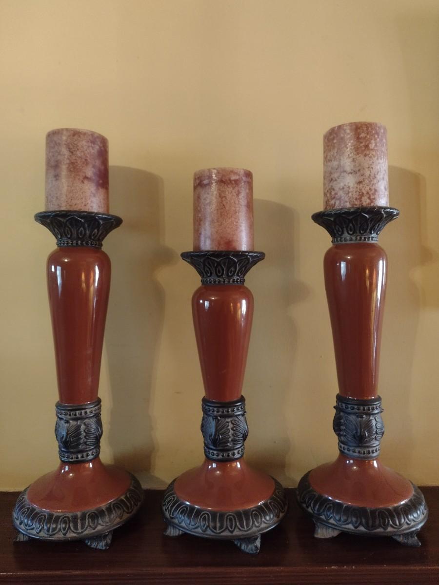 Set of Three Fitz and Floyd Ceramic Candlestick Holders