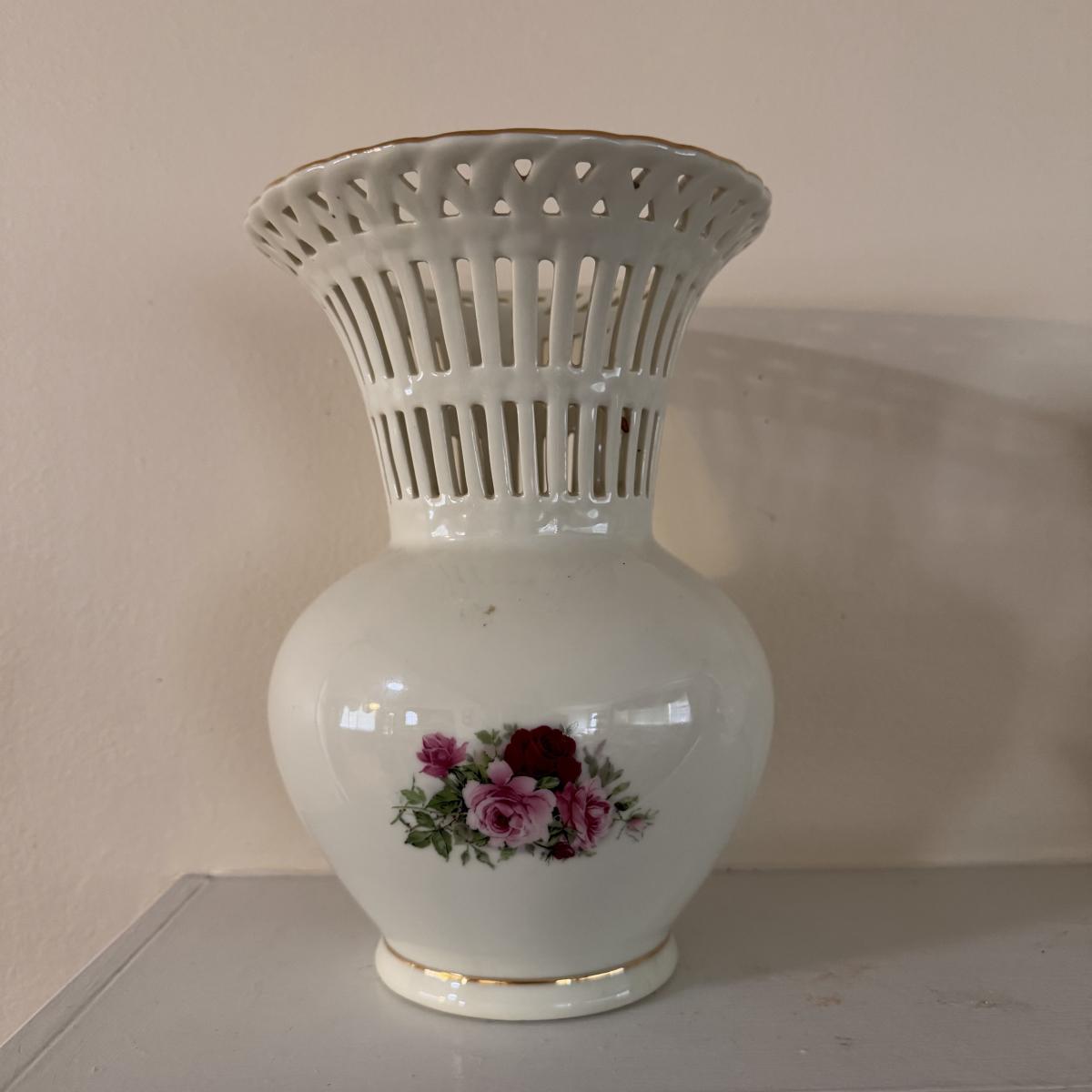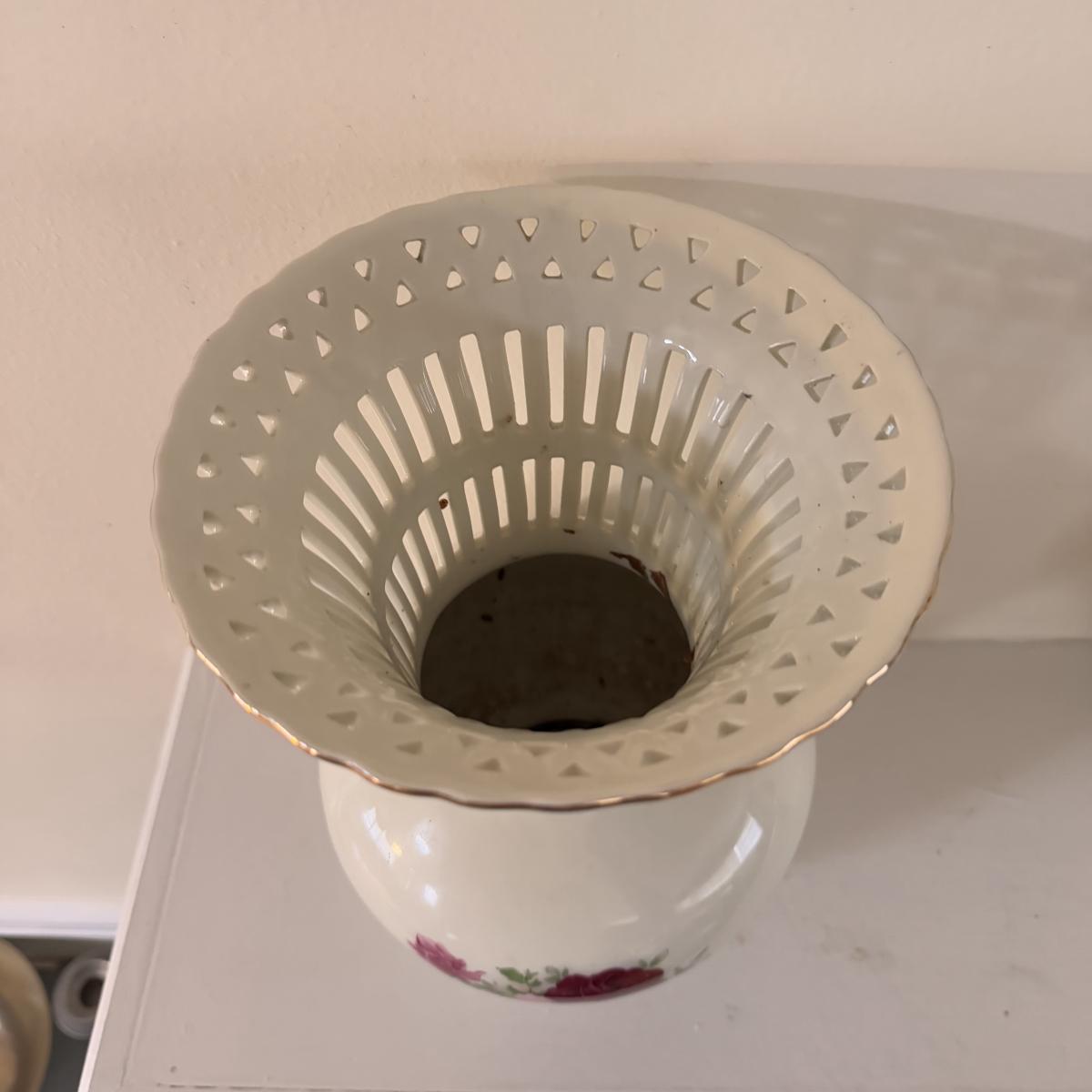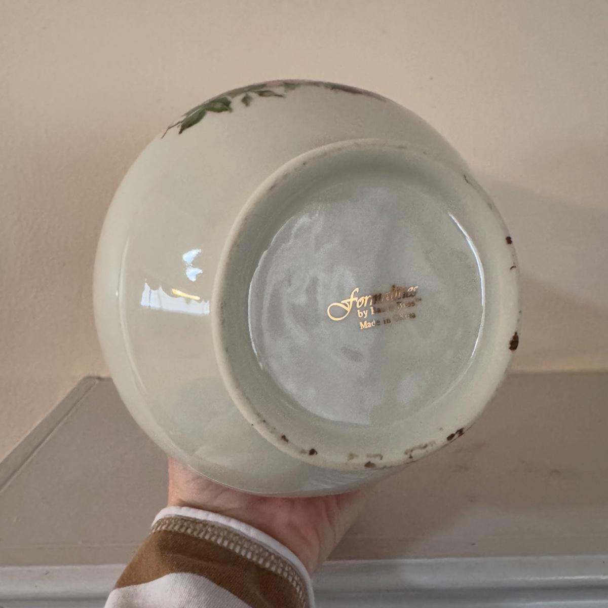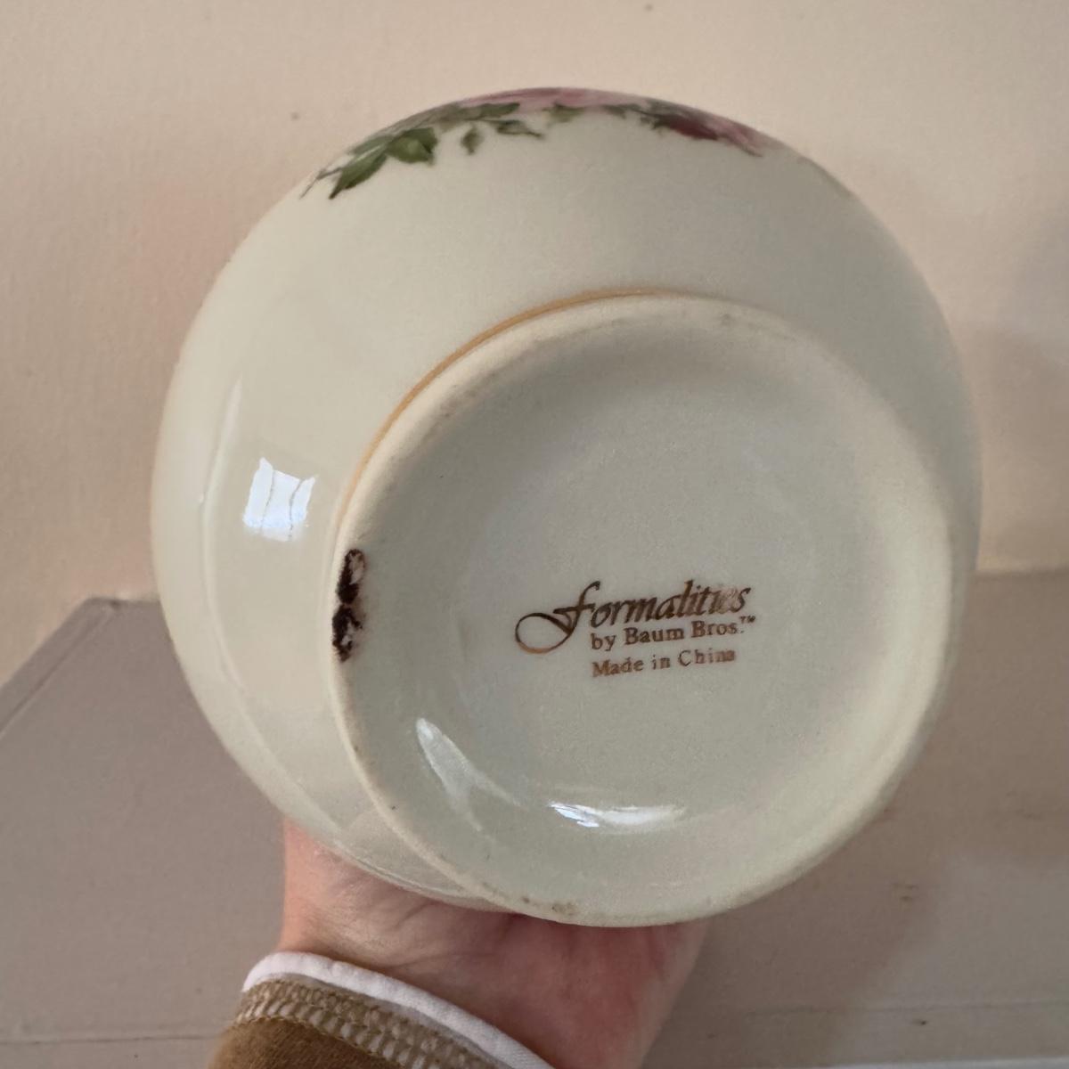 Lot includes three Formalities by Baum Bros ceramic vases in three staggered sizes. The largest vase measures 7”D x 10”H and the smallest is 4.95” x 5.5”H. Shipping available.