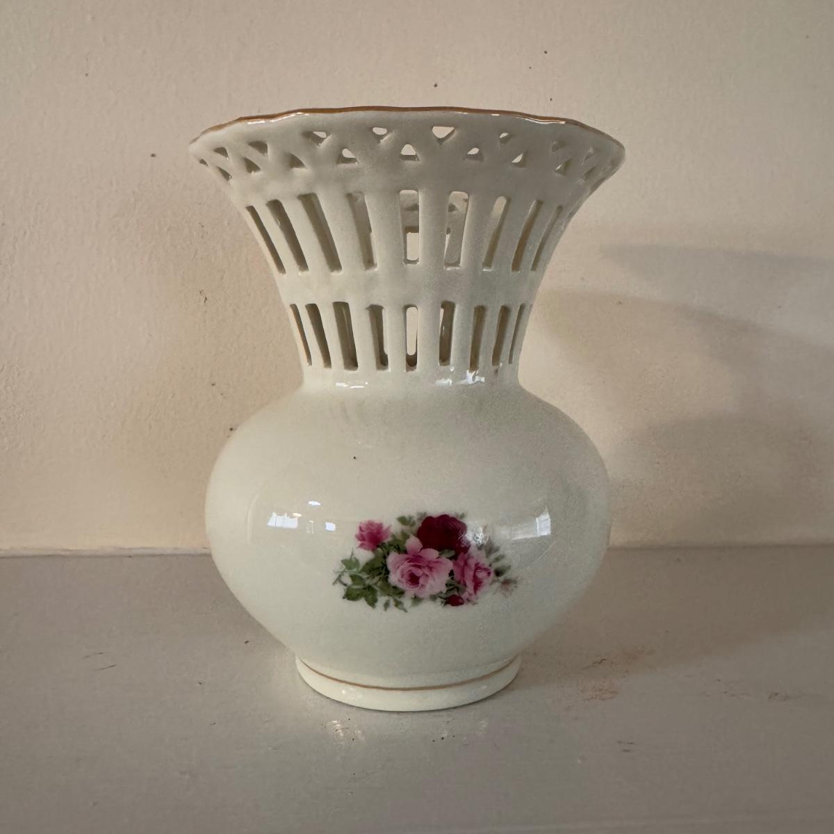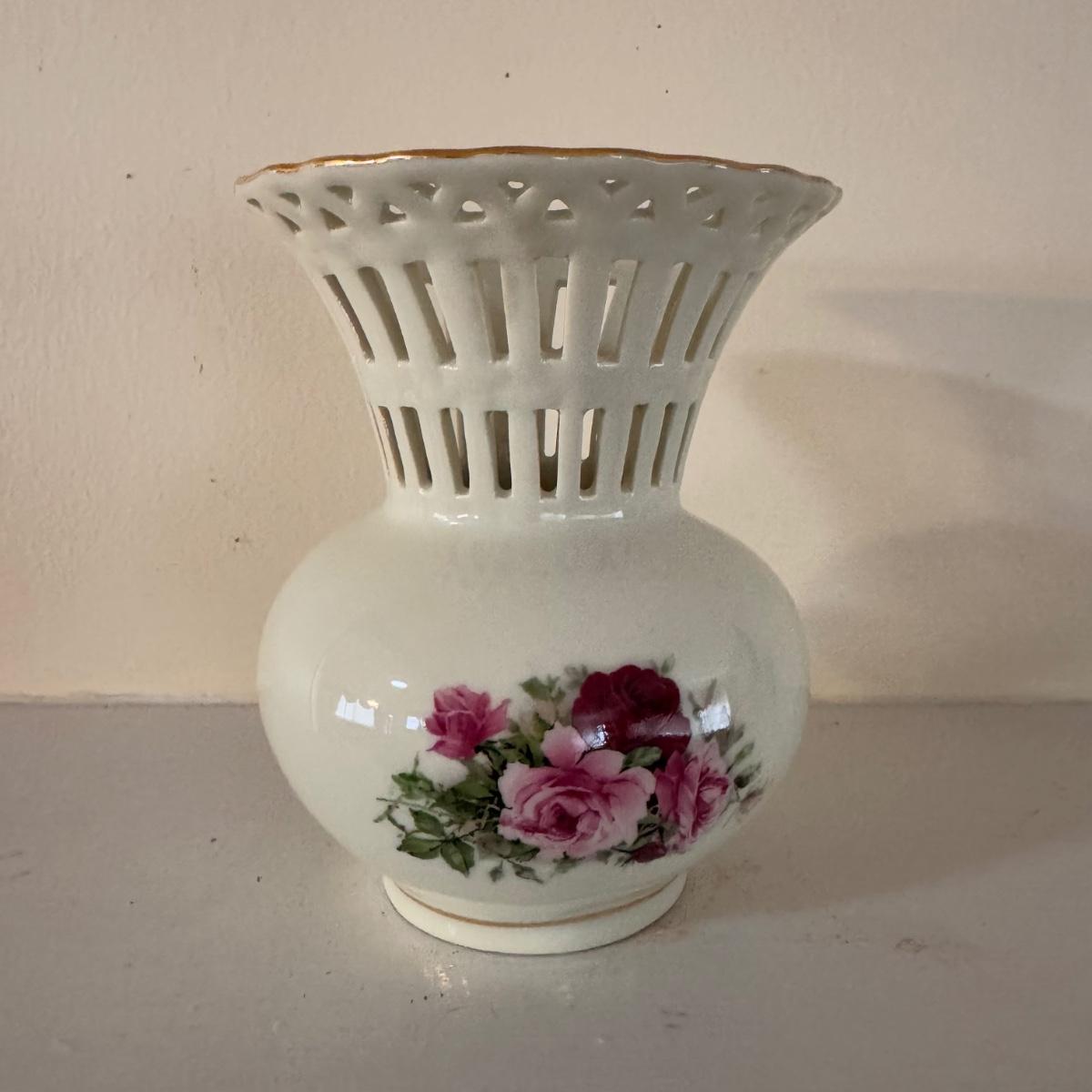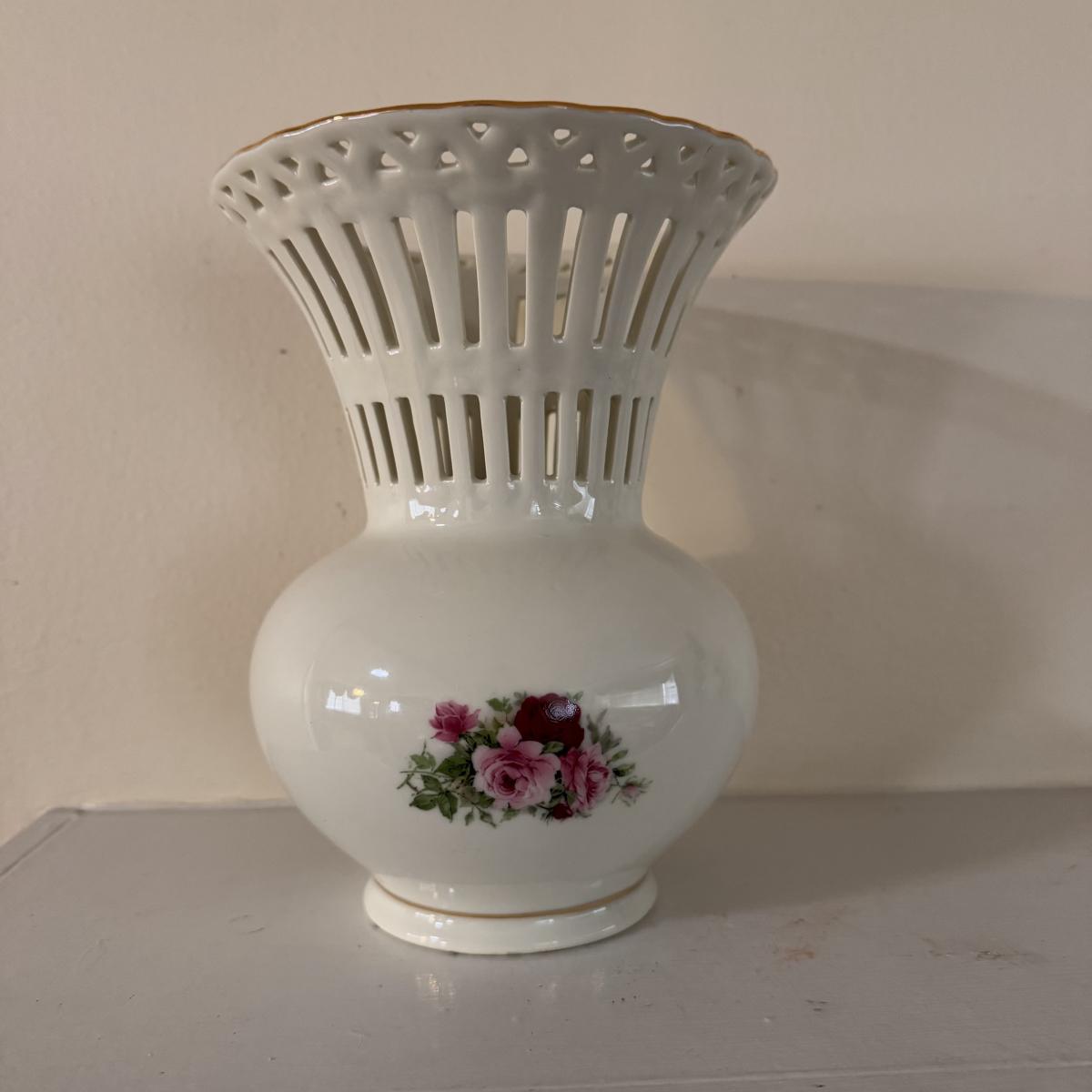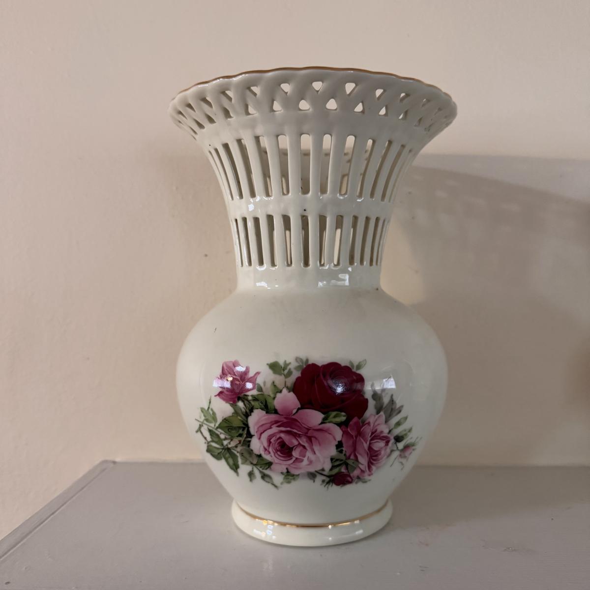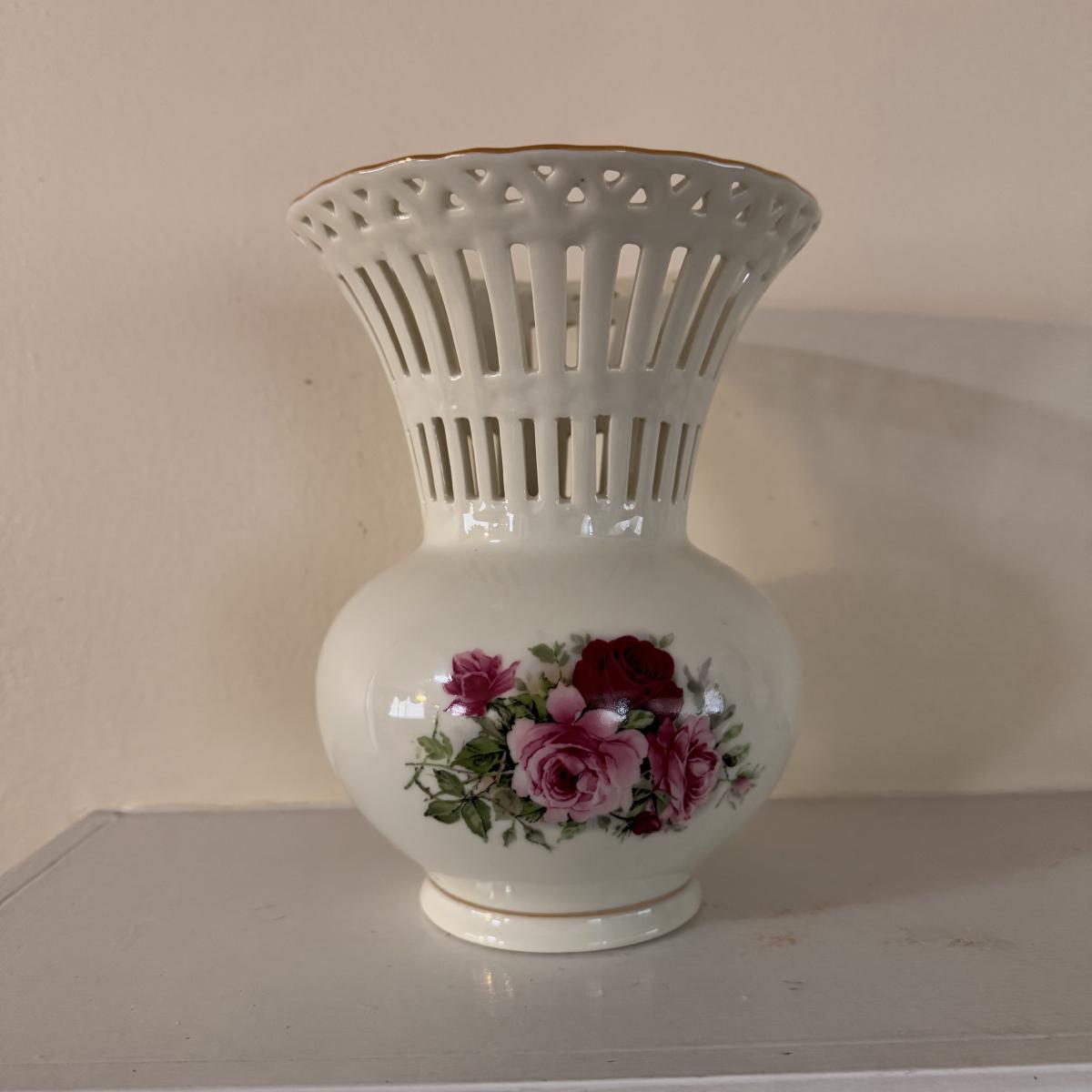 Lot includes three Formalities by Baum Bros ceramic vases in three staggered sizes. The largest vase measures 7”D x 10”H and the smallest is 4.95” x 5.5”H. Shipping available.