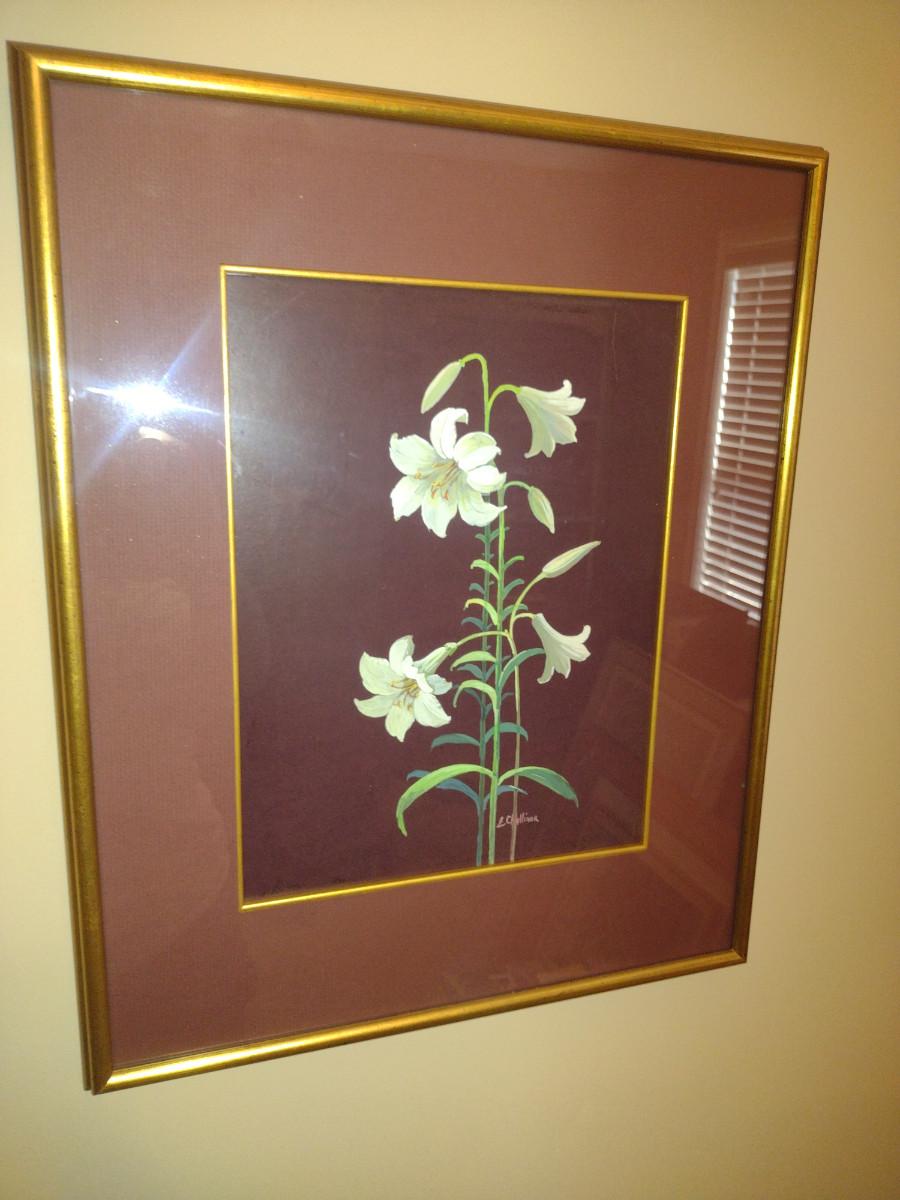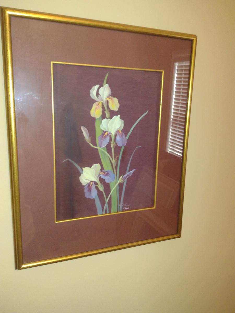 Set of Three Framed Floral Prints- Irises and Easter Lily- Approx 17" x 20 3/4"