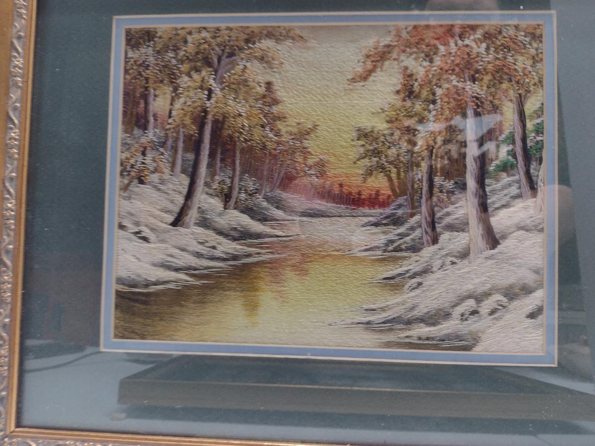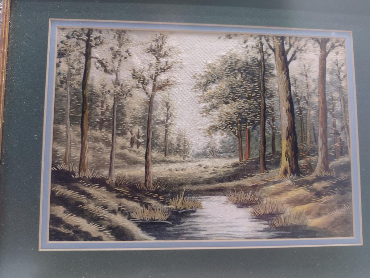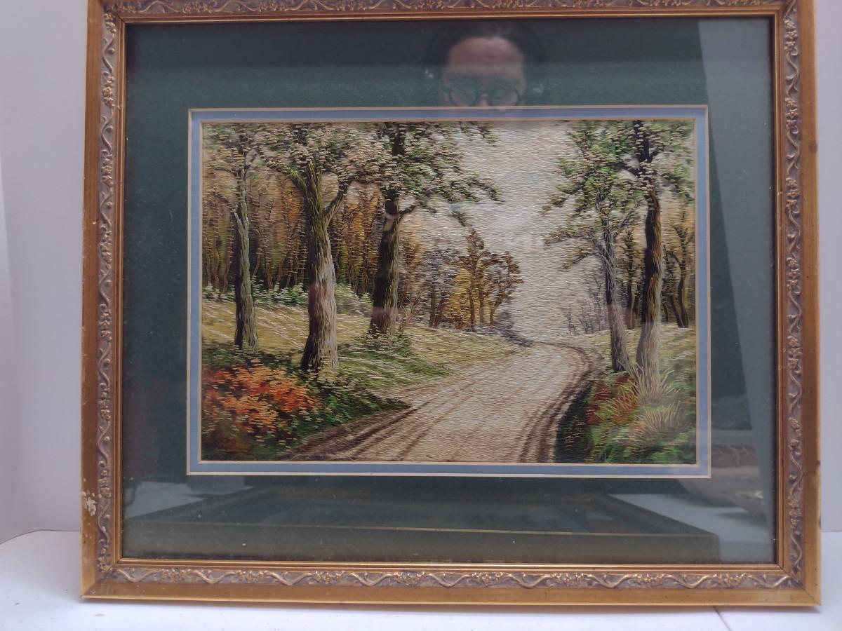Set of Three Framed Hand Made Needlework Landscape Design Hangings