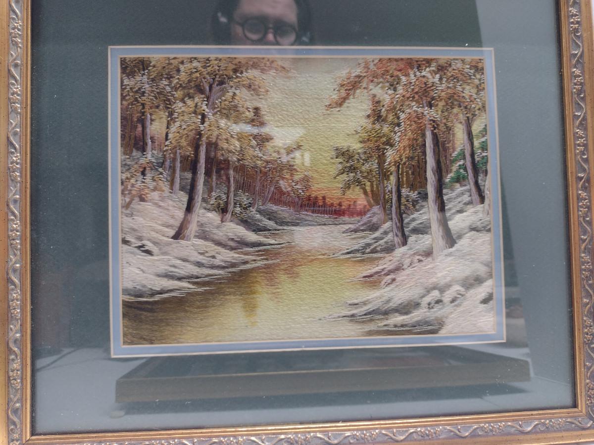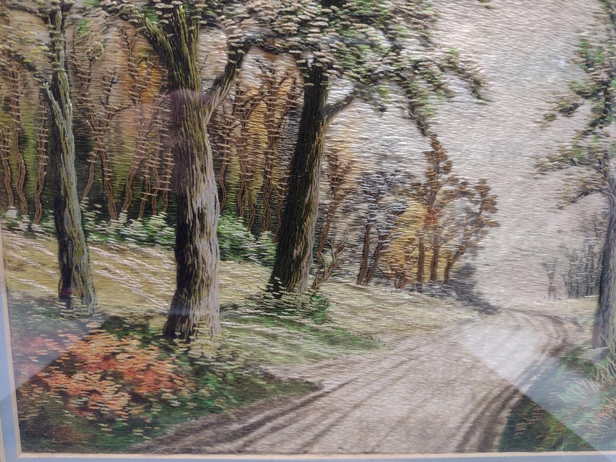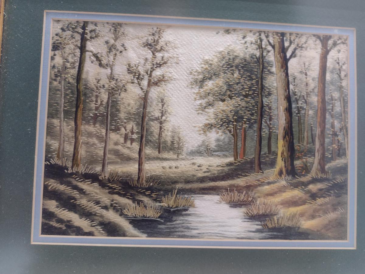 Set of Three Framed Hand Made Needlework Landscape Design Hangings