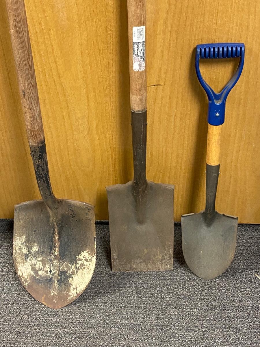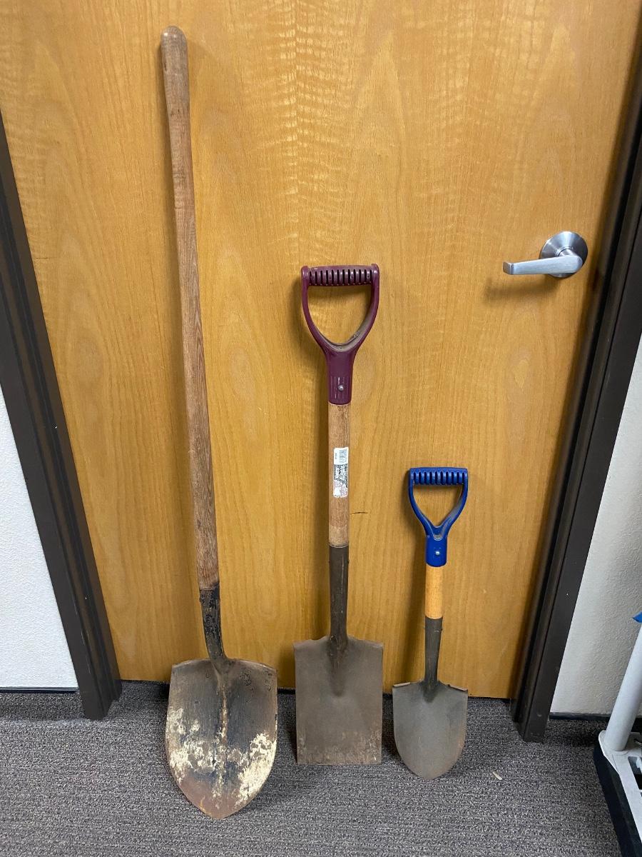 Set of 3 garden shovels. Three different sizes. Handles are in good condition, no splintering.