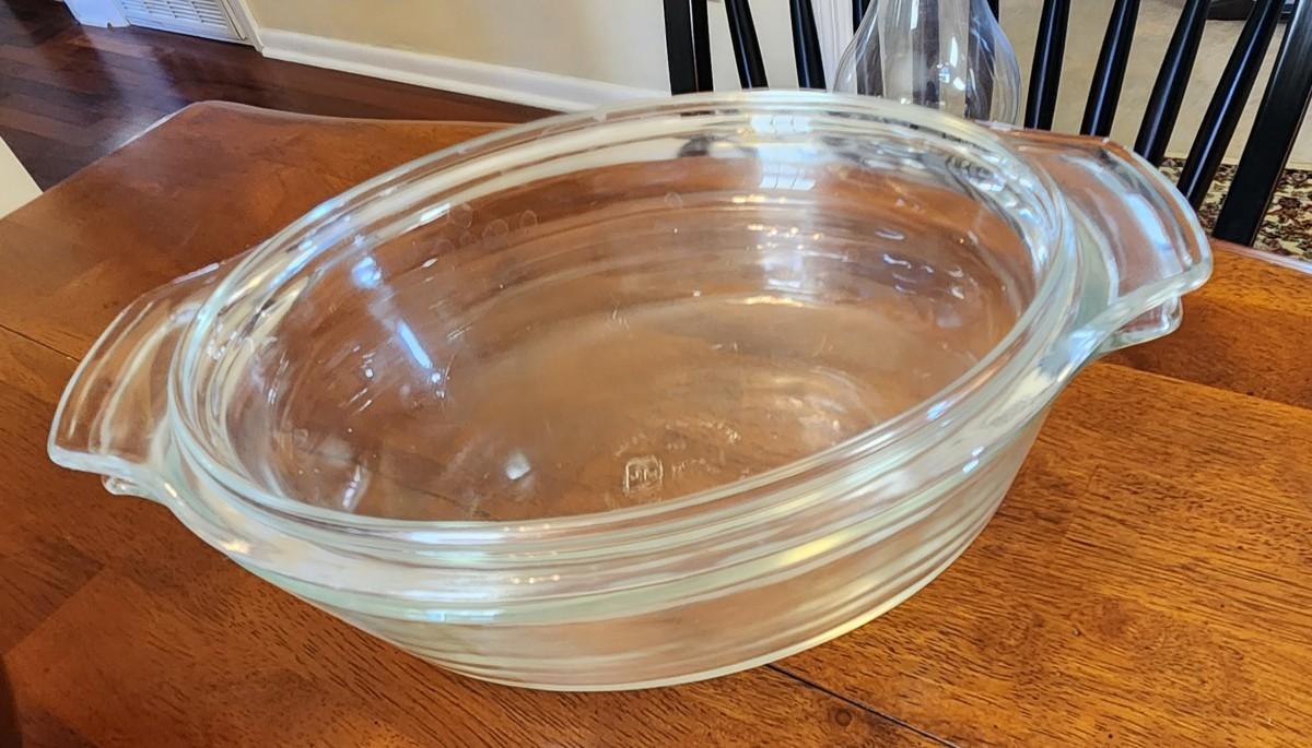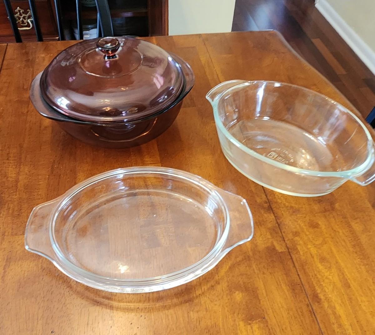 Set Of Three Glass Baking Dishes, Third Dish Can Be Used As Lid For Second Dish