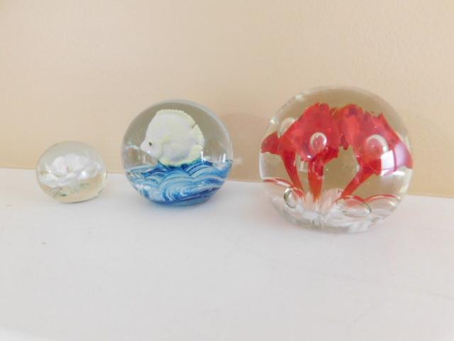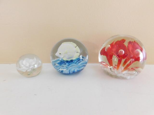 Set of Three Glass Paper Weights