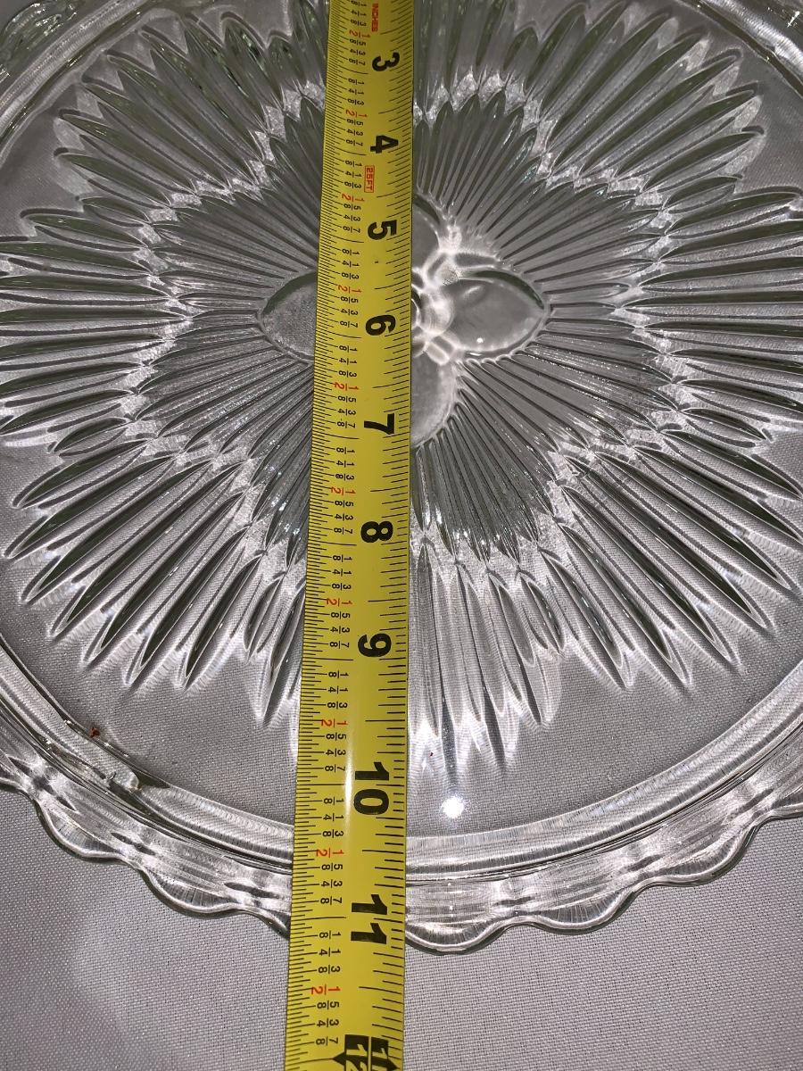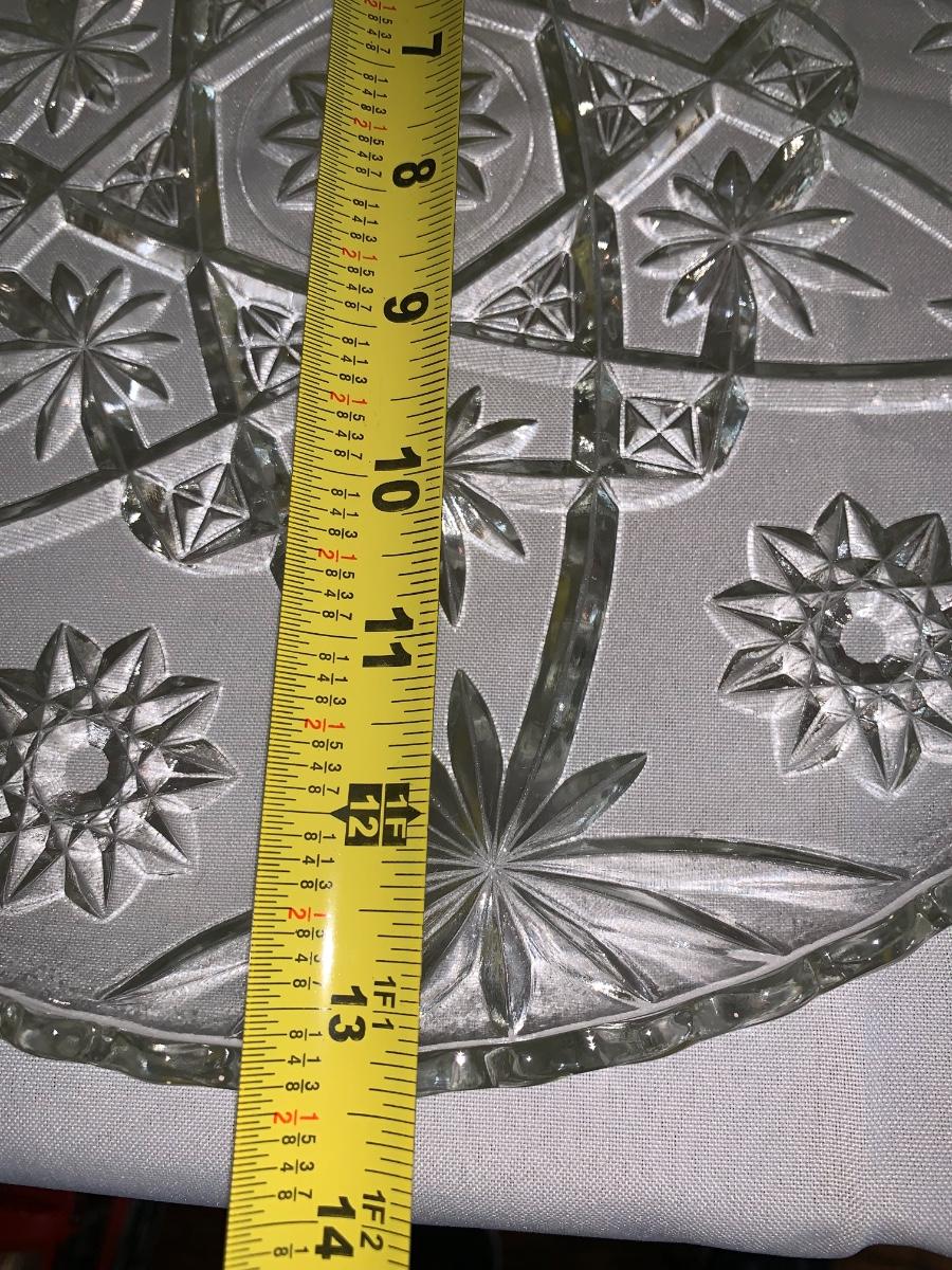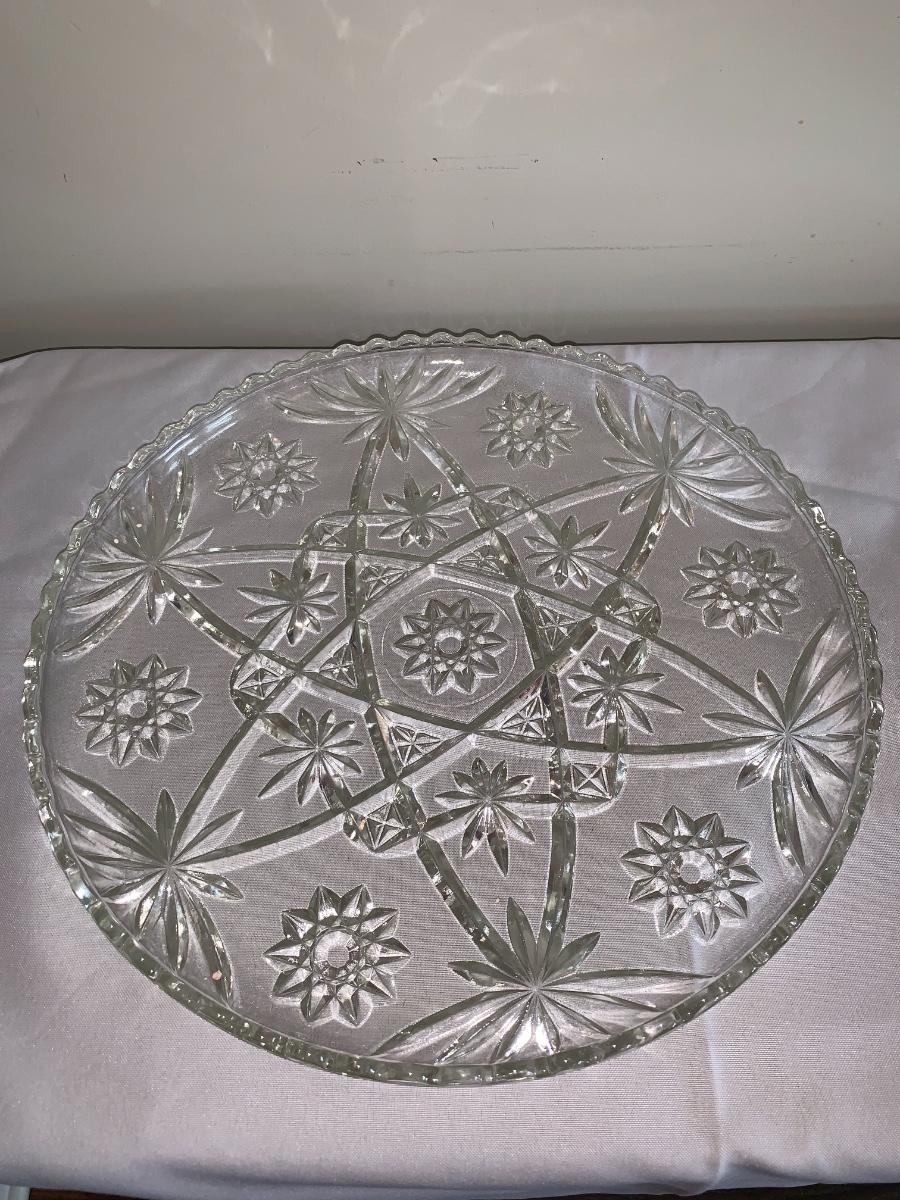 Three glass trays with separate patterns, heavy and all in excellent condition.
