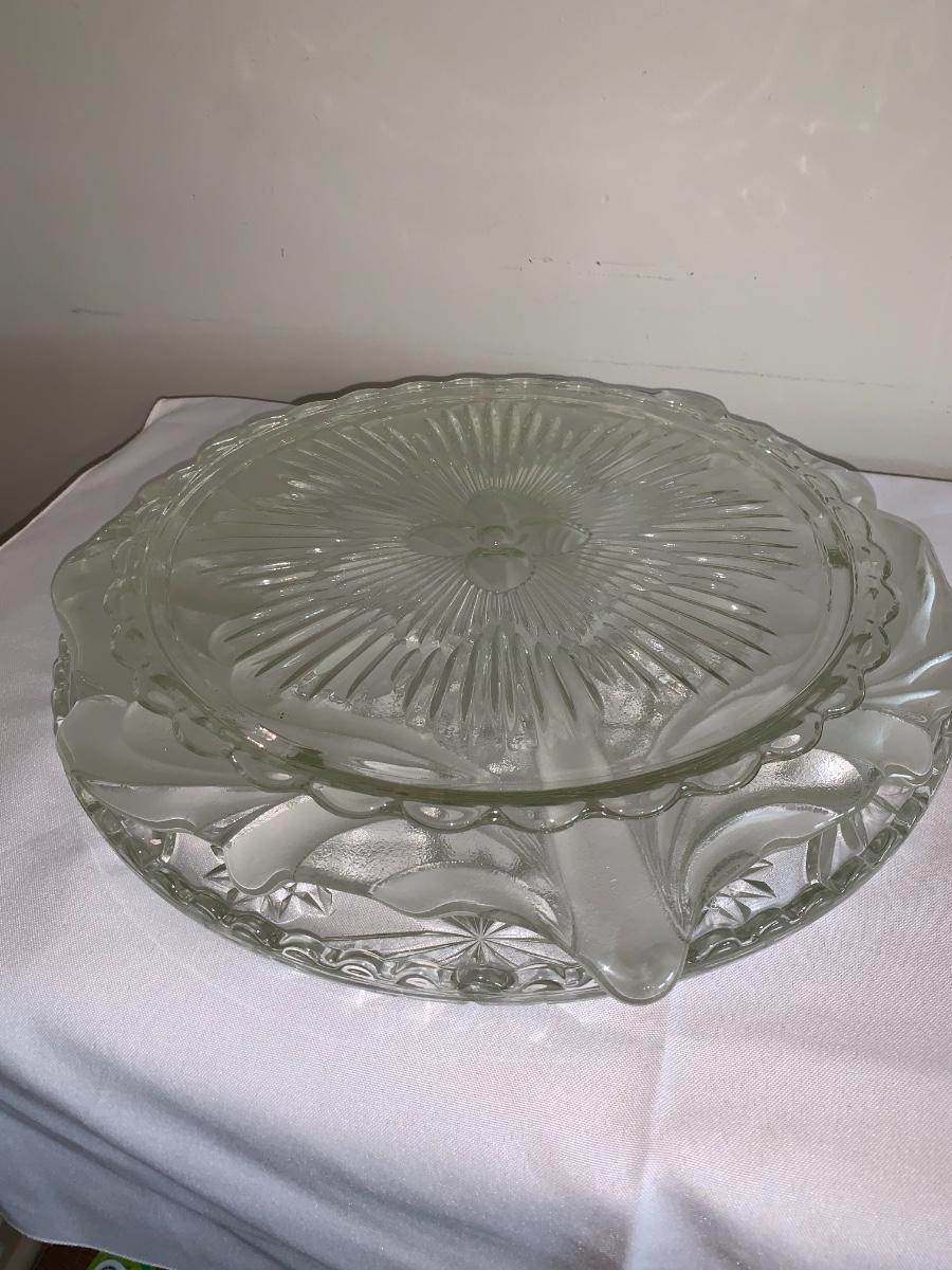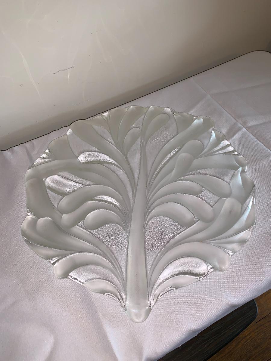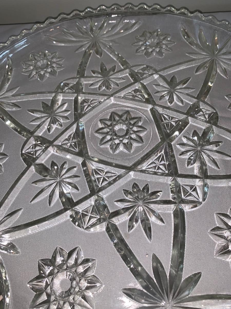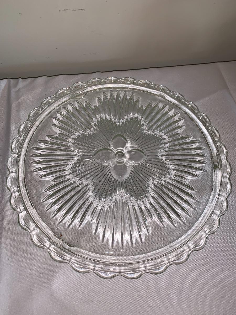 Three glass trays with separate patterns, heavy and all in excellent condition.