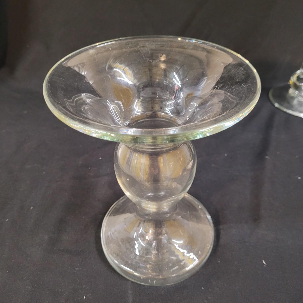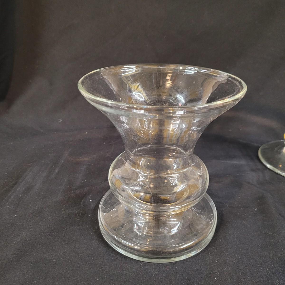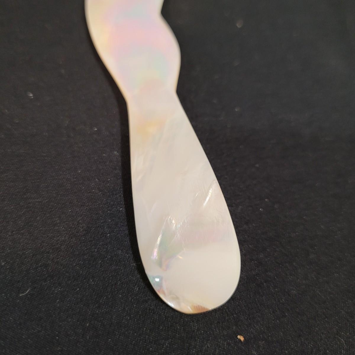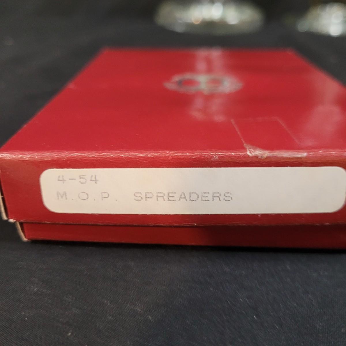 Three thick, sturdy glass vases, with various shapes and sizes. Excellent condition with smudging and grime buildup, easily cleanable. Set of four spreading knives by Arthur Court of California. Materiel appears to be mother of pearl but cannot verify. Very light in weight, with thicker handles and very thin blades. Each spreader is slightly different due to the natural material. Shipping available.