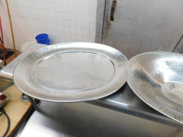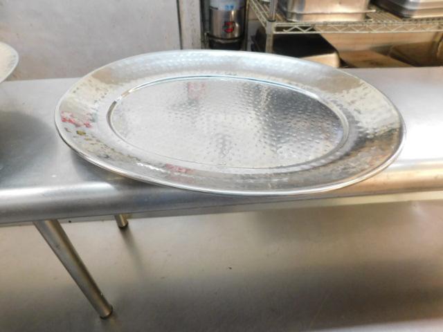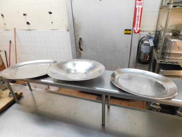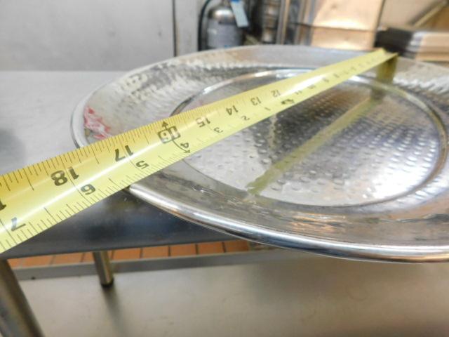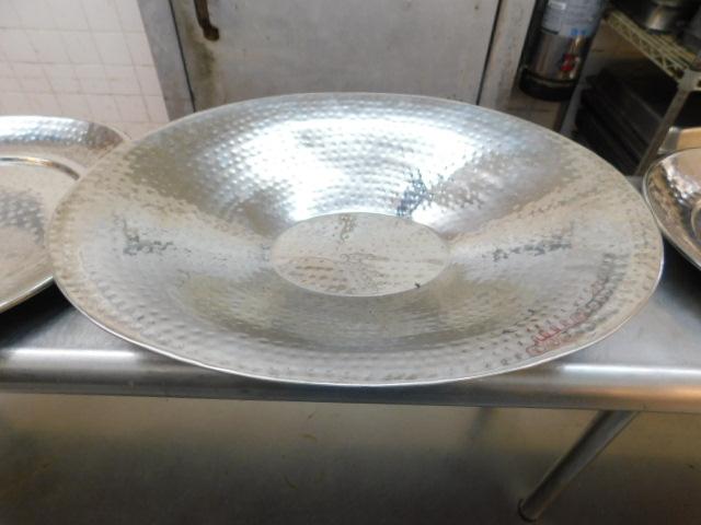 Set of Three Hammered Finish Polished Metal Serving Trays and Platters