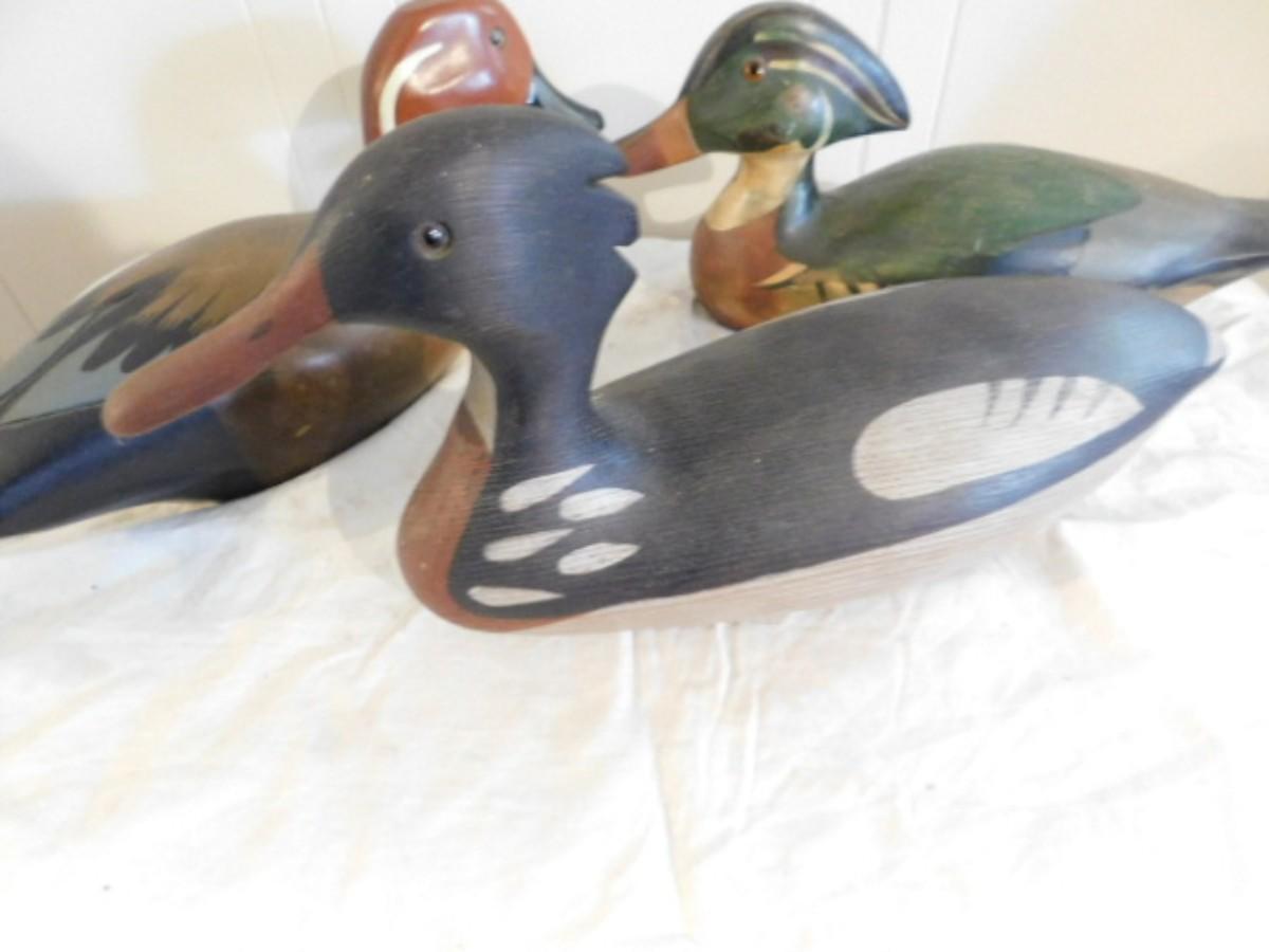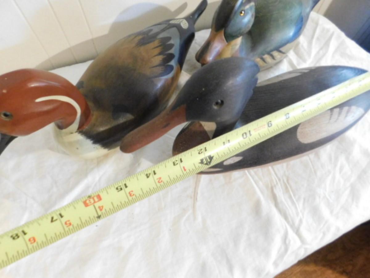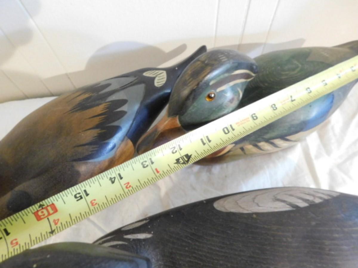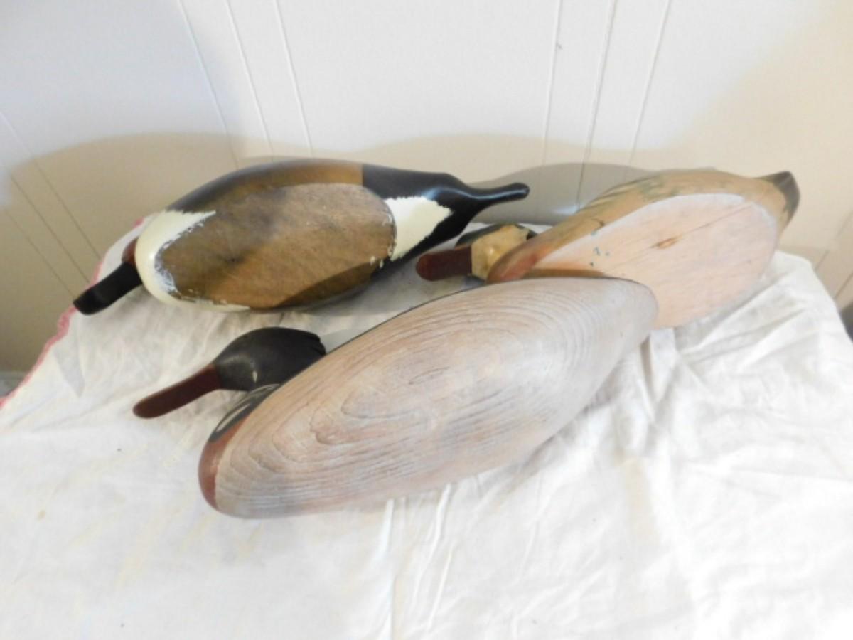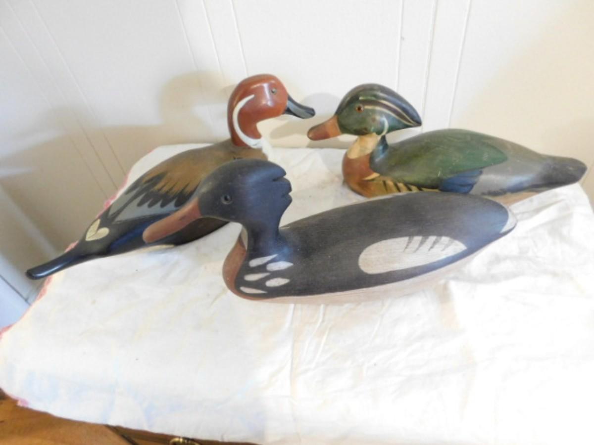 Set of Three Hand Carved Wood Duck Decoys. No maker marks or signatures