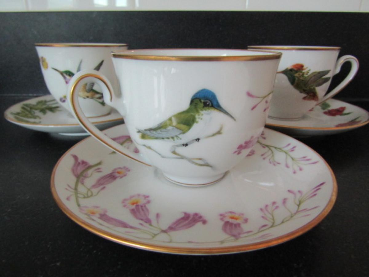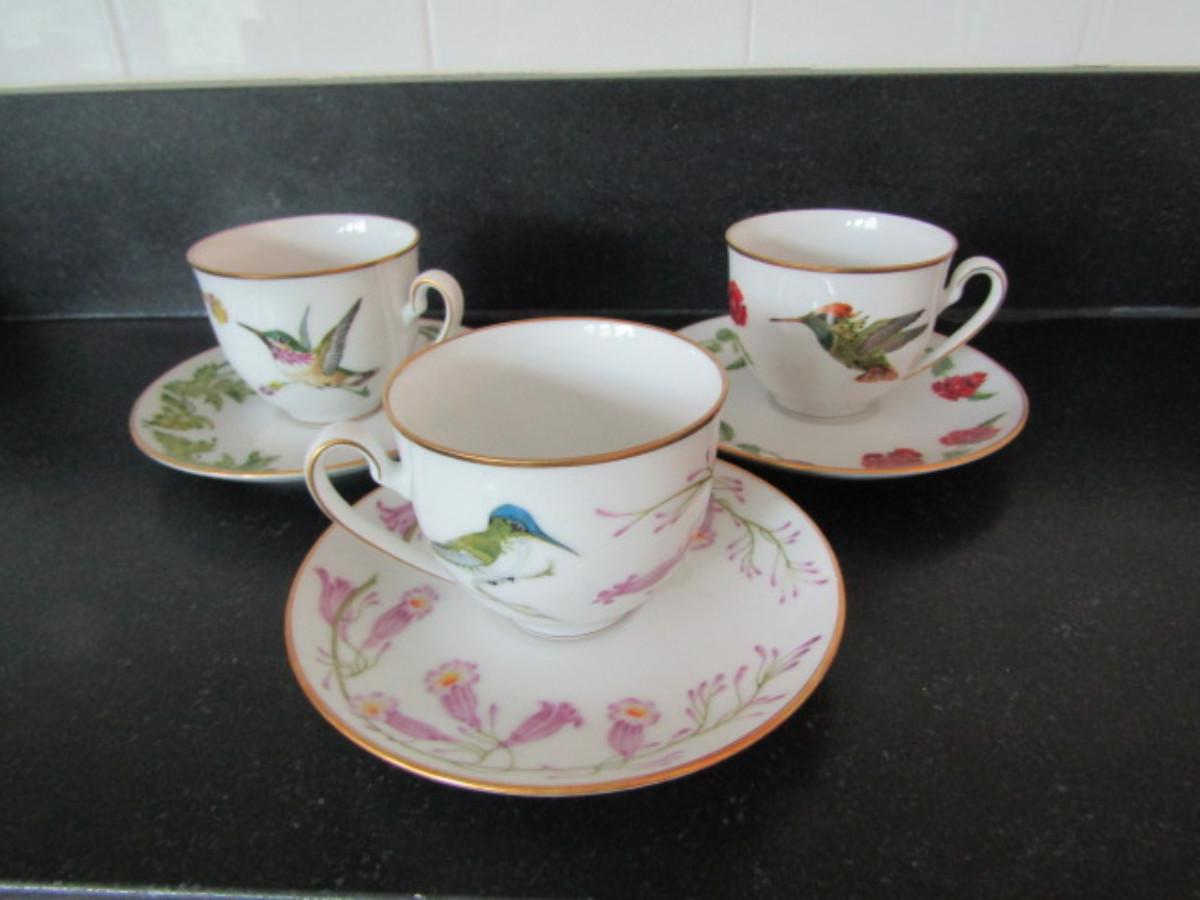 Set of Three Hummingbirds of the World Tea Cups with Saucers