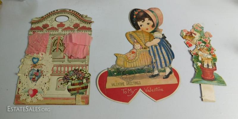Set of Three Large, Antique Valentine's Day Cards