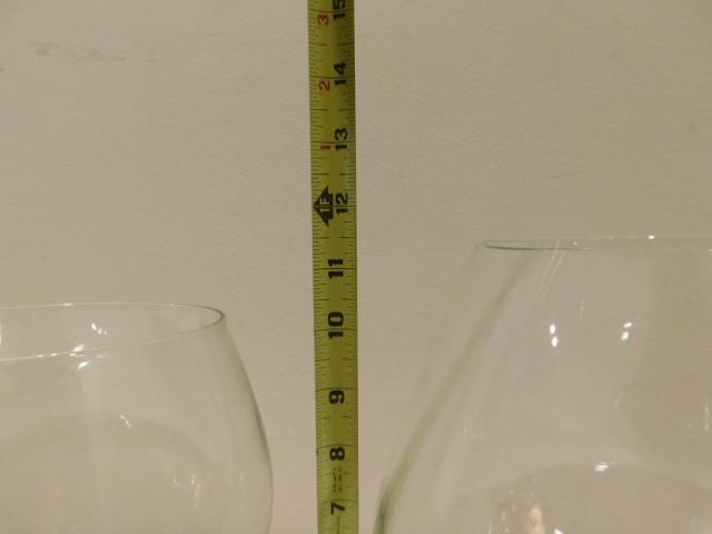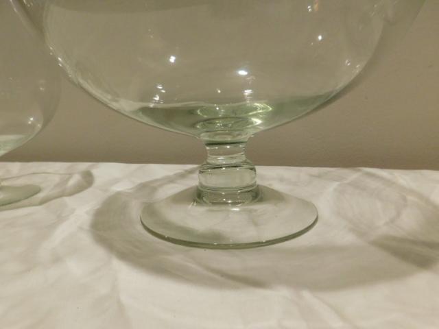 Set of Three Large Clear Glass Trifle and Serving Footed Bowls 8" and 12" have small chips along lips as shown