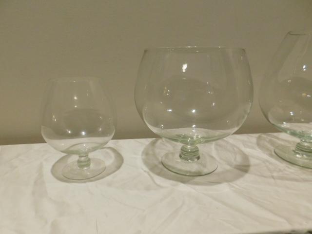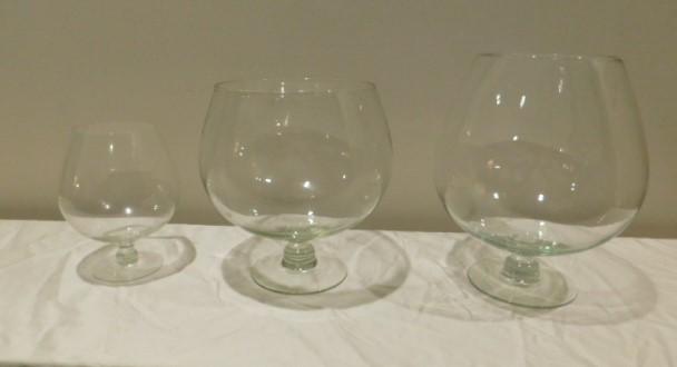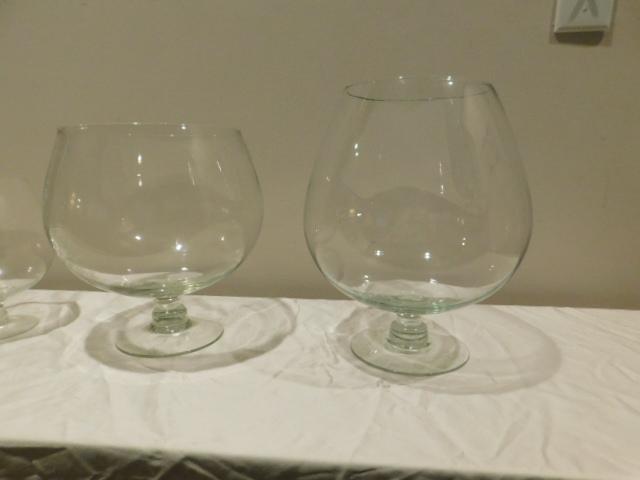Set of Three Large Clear Glass Trifle and Serving Footed Bowls 8" and 12"