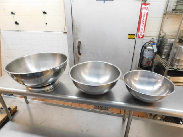 Set of Three Large Commercial NSF Mixing Bowls Various Sizes