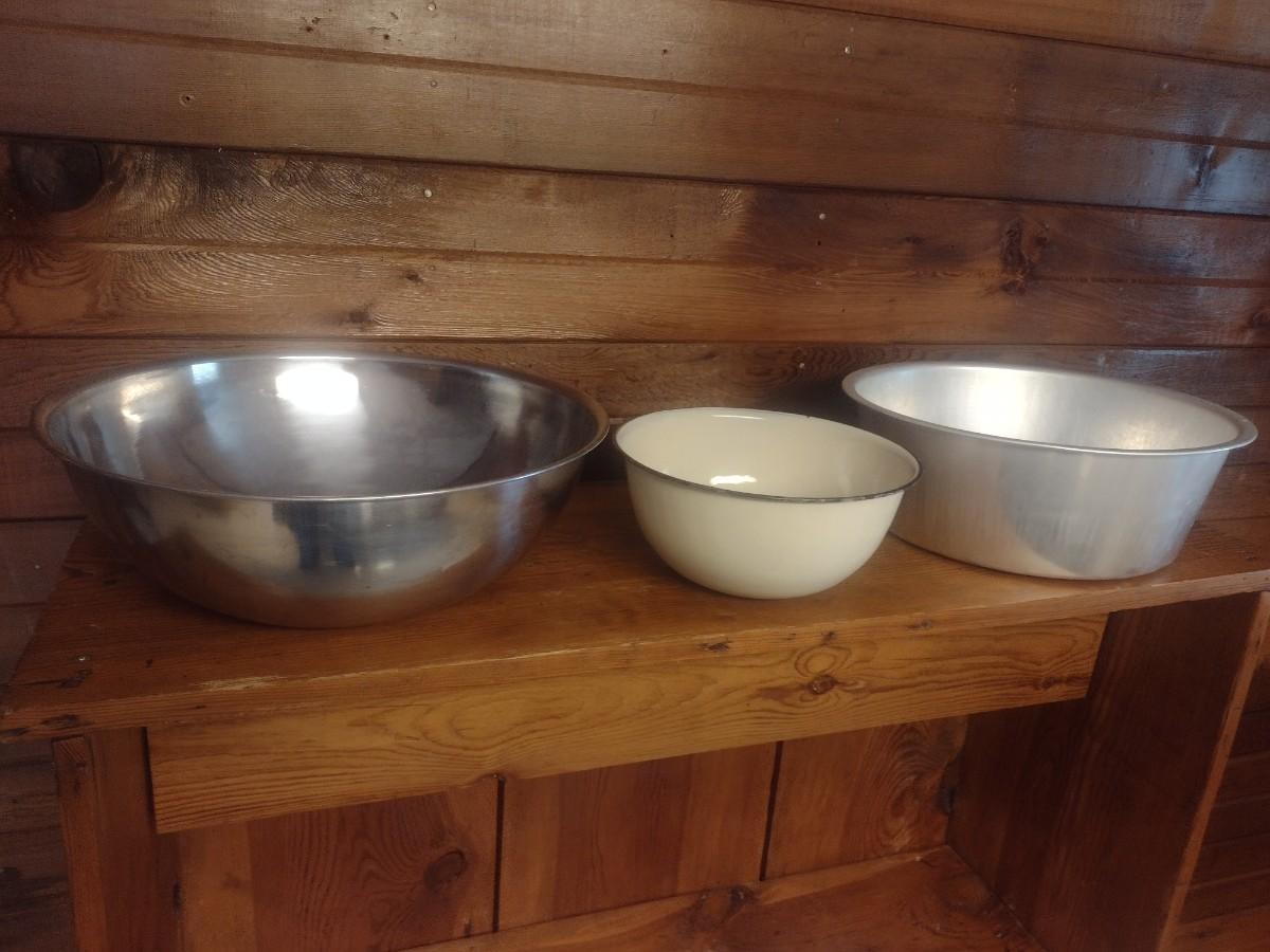 Set of Three Large Mixing or Bread Bowls Various Sizes