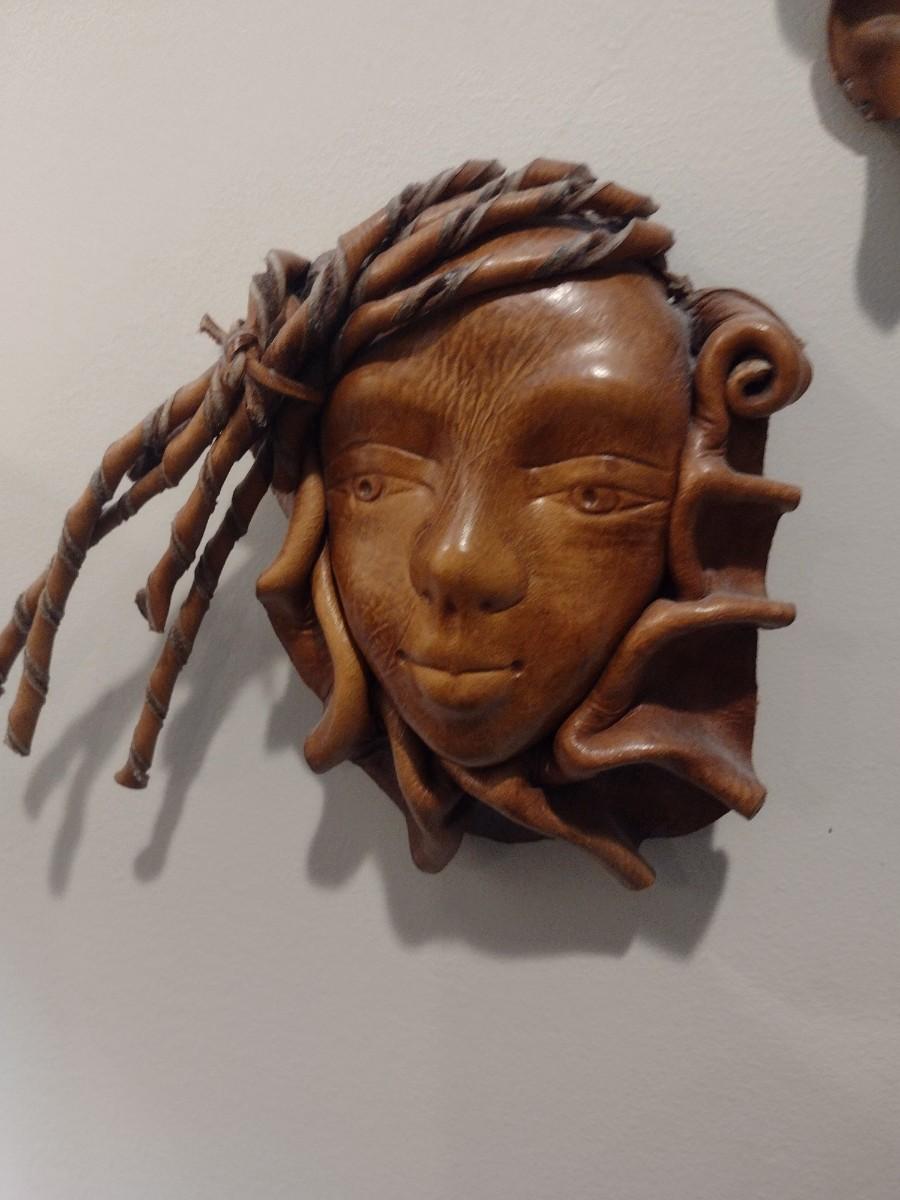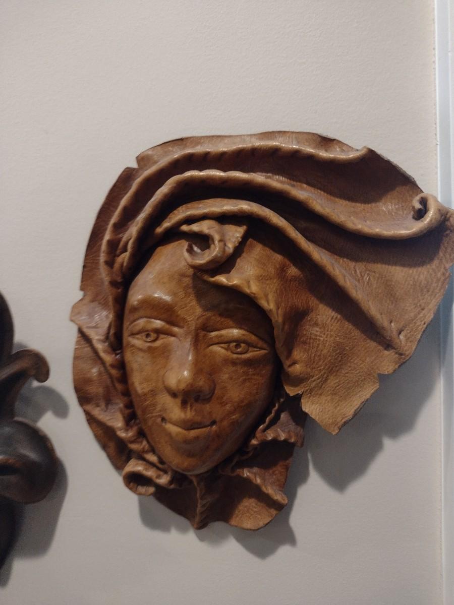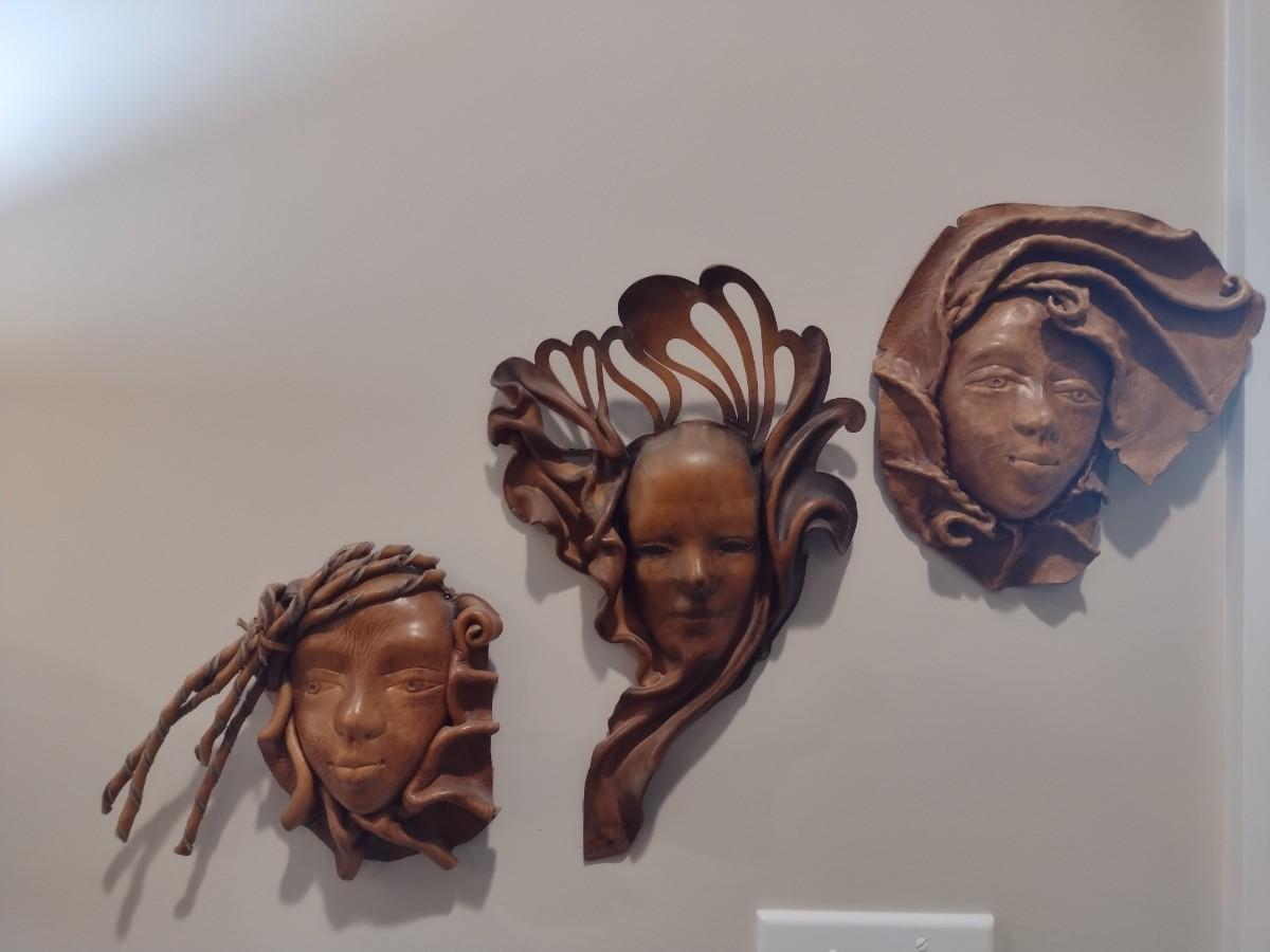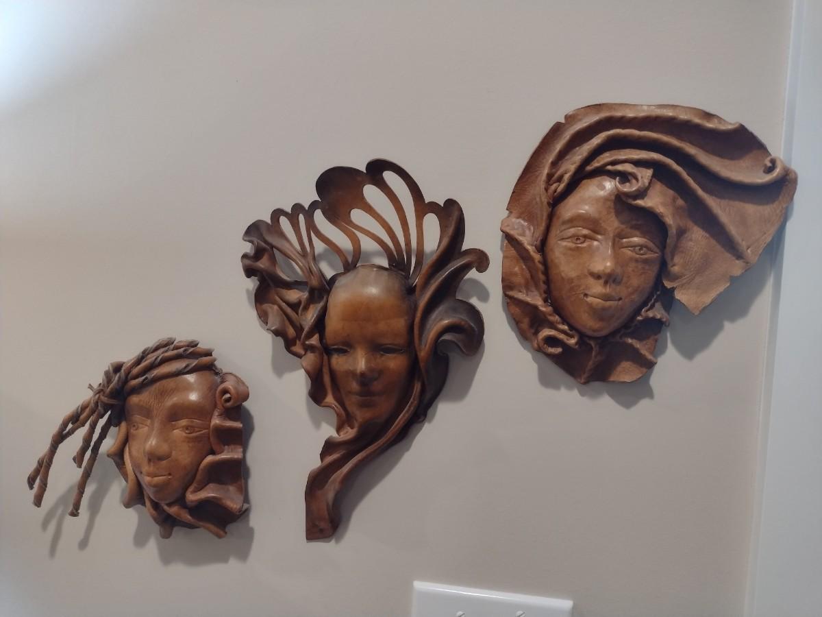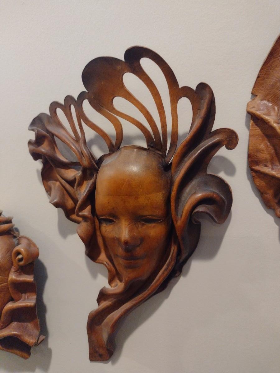 Set of Three Leather Face Masks Wall Art