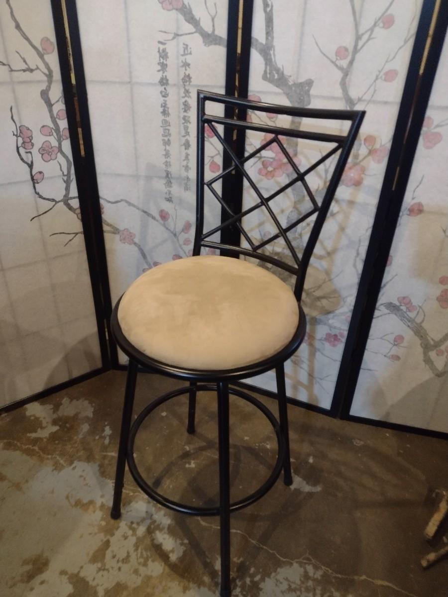 Set of Three Matching Metal Frame Bar Stools with Cushioned Seat
