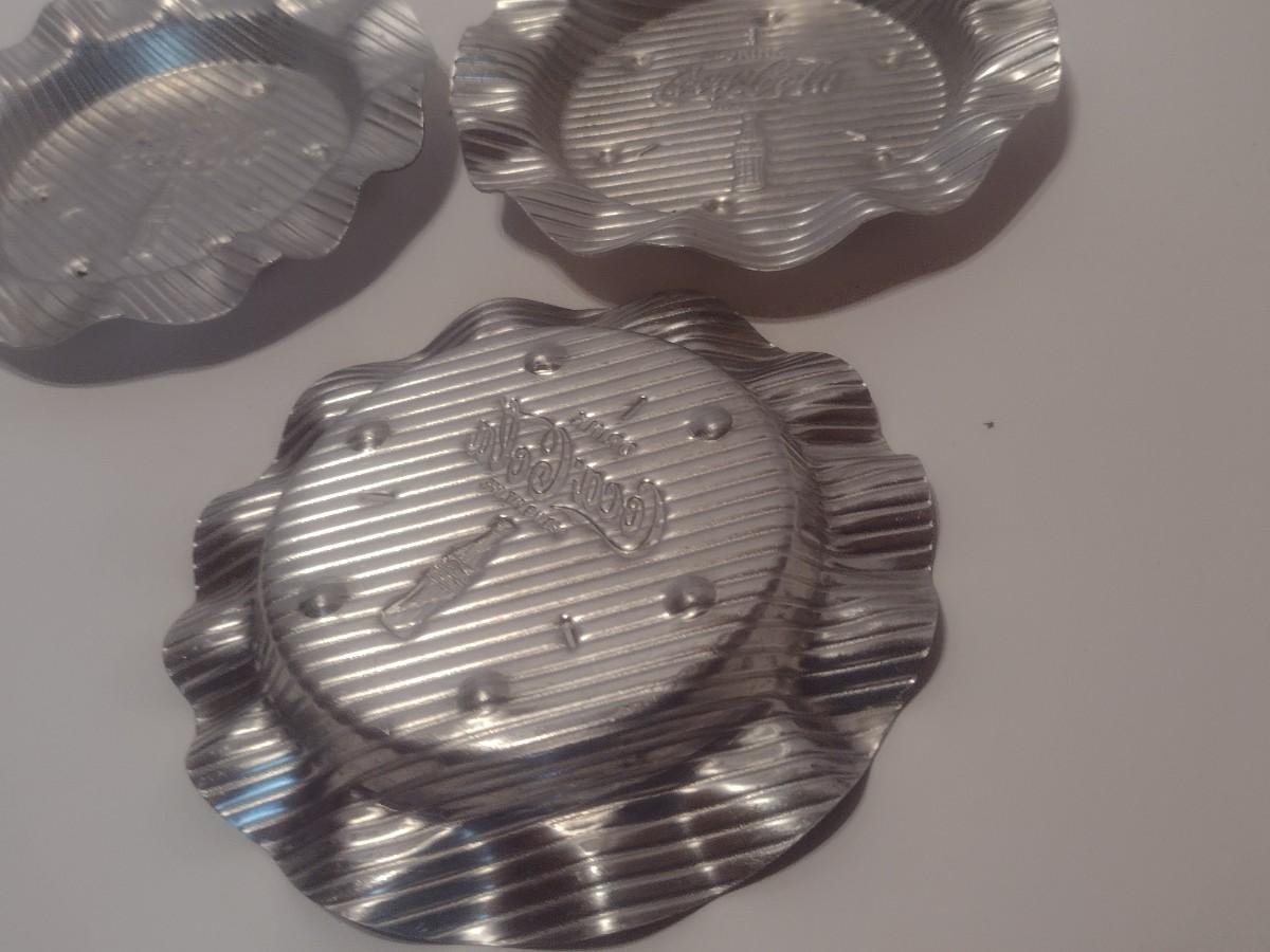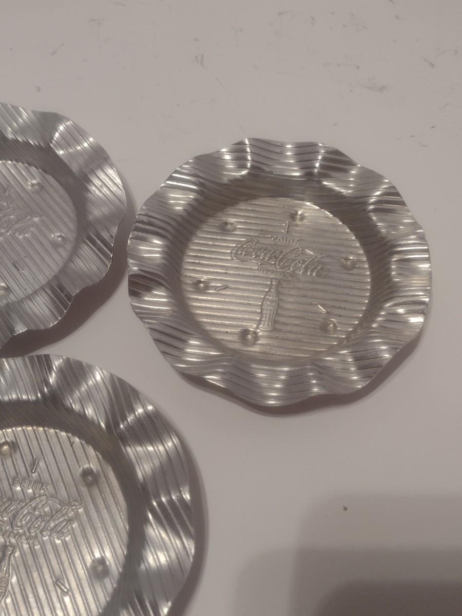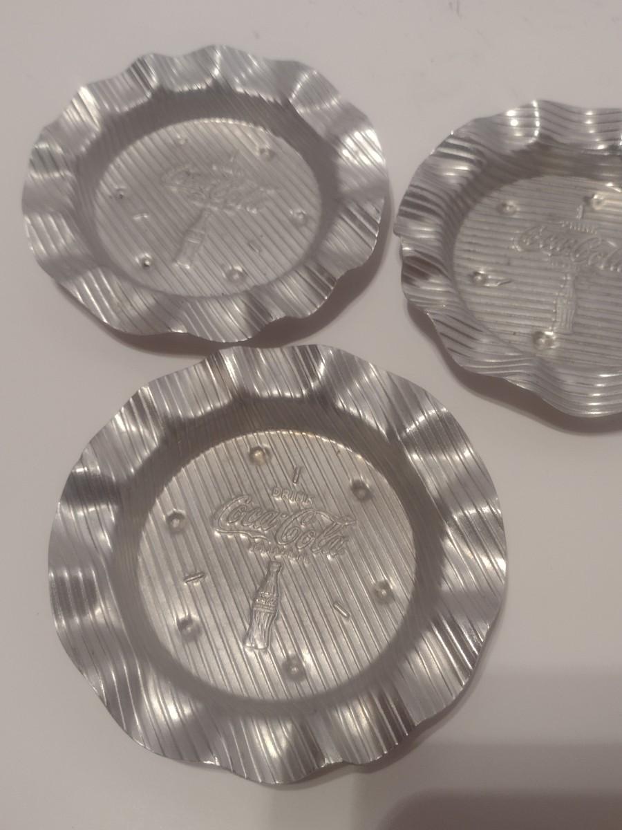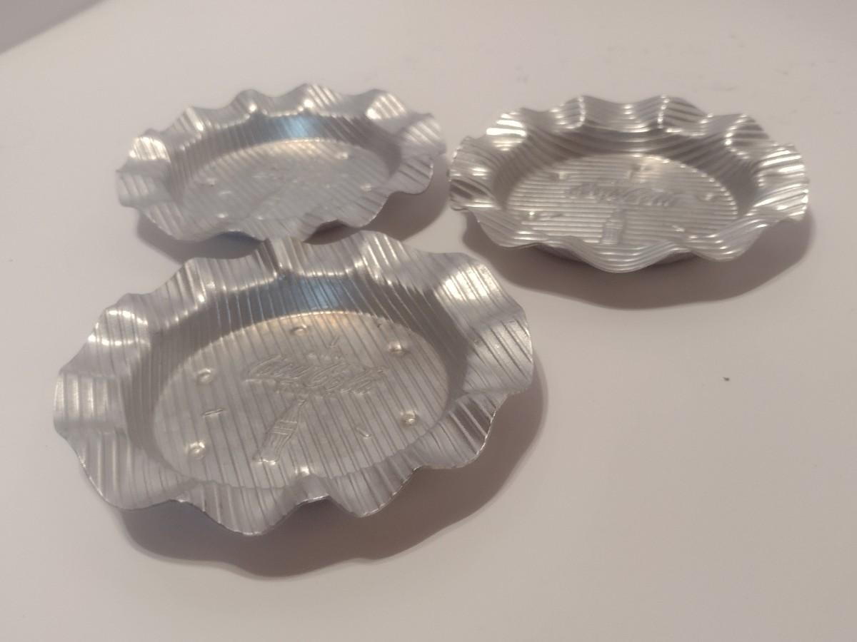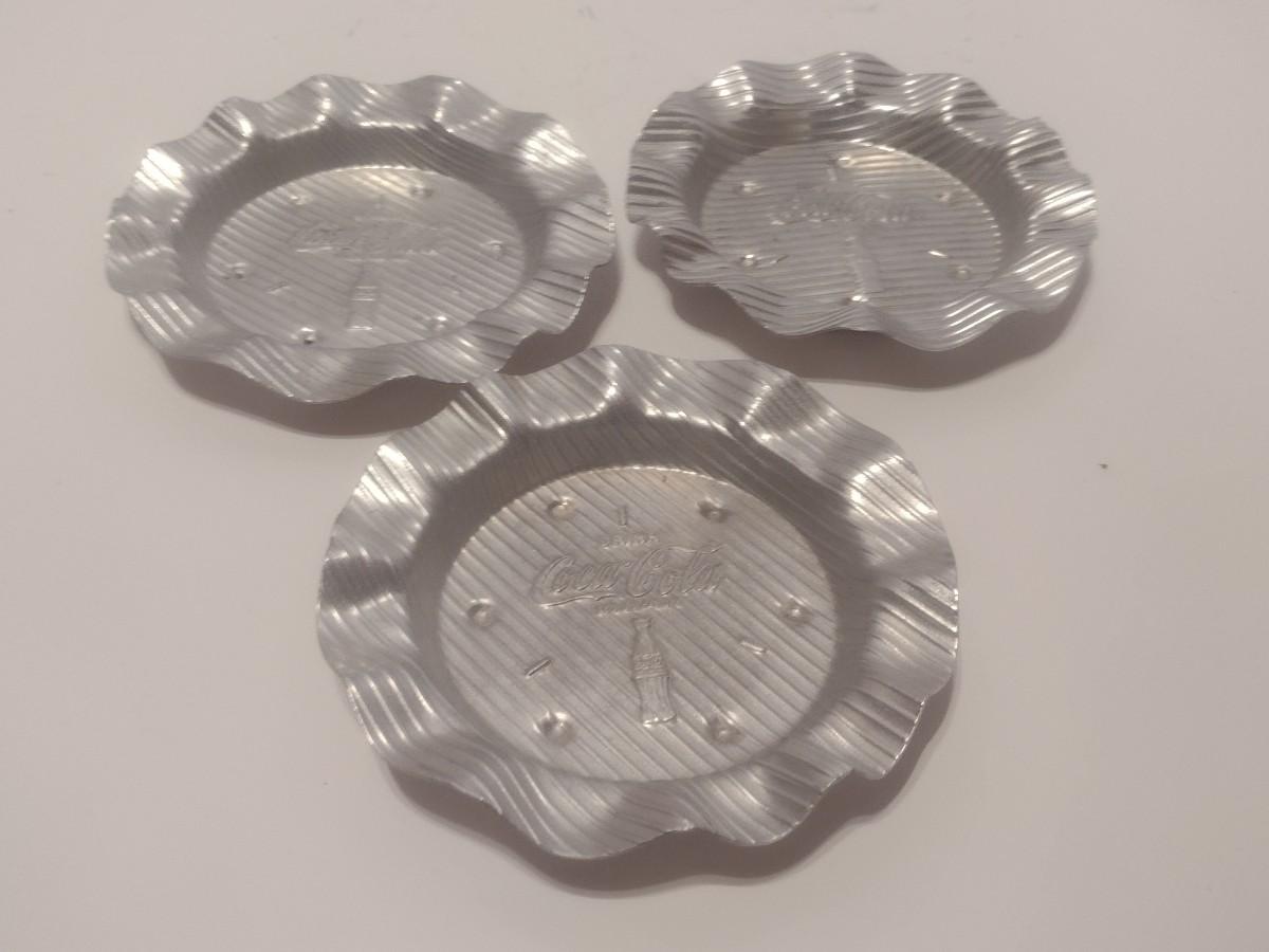 Set of Three Mid-Century Hammered Aluminum Coca-Cola Ashtrays
