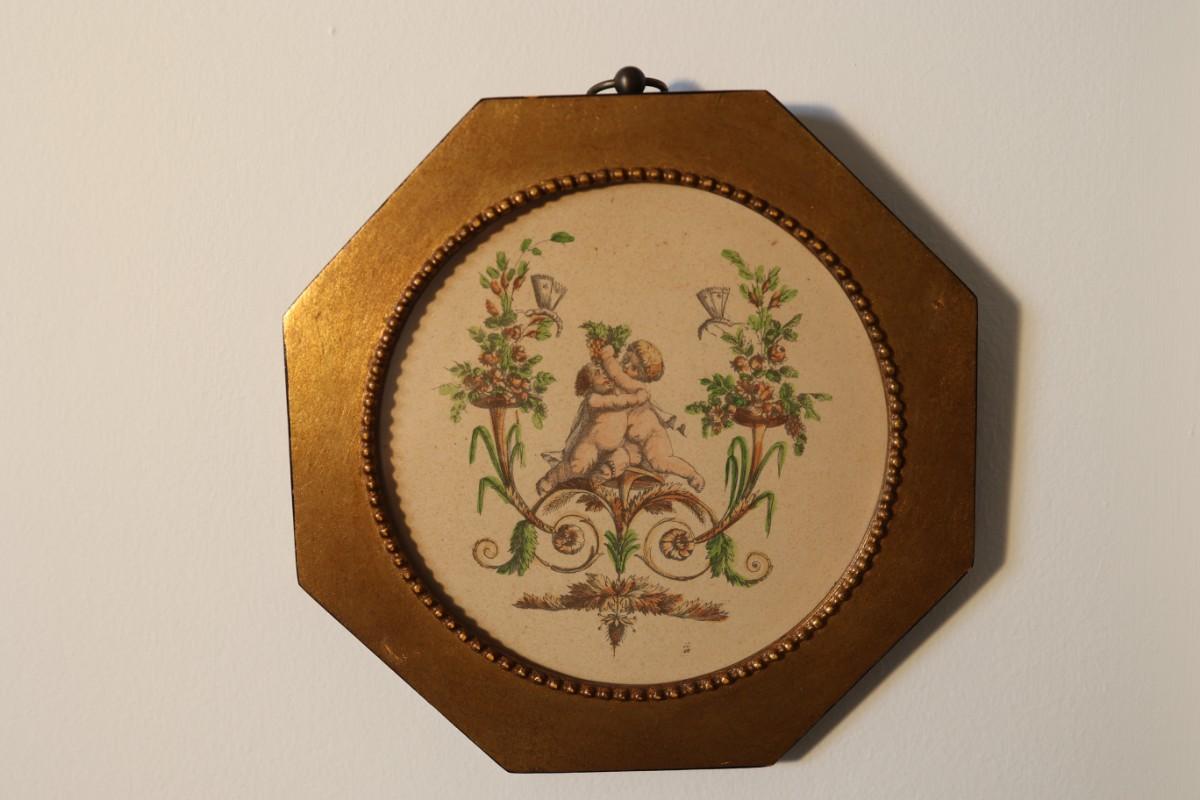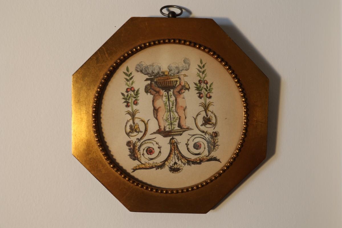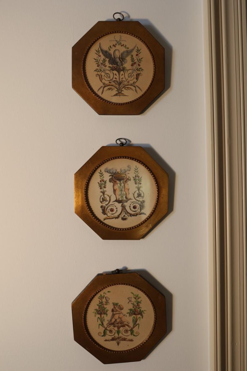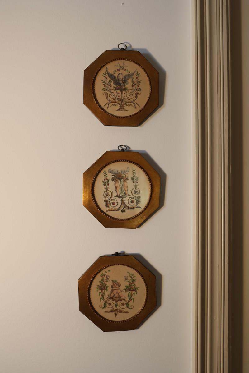 Set of Three Mid-century Octagonal Gold Framed Wall Hangings