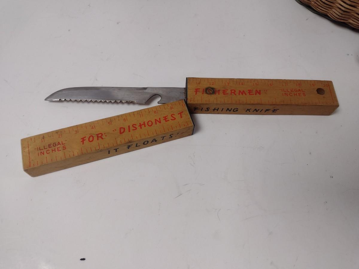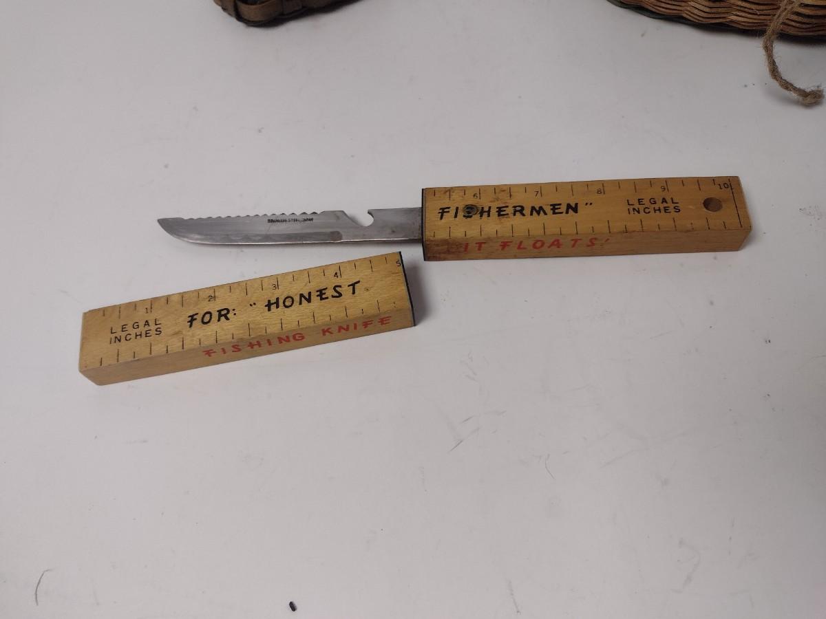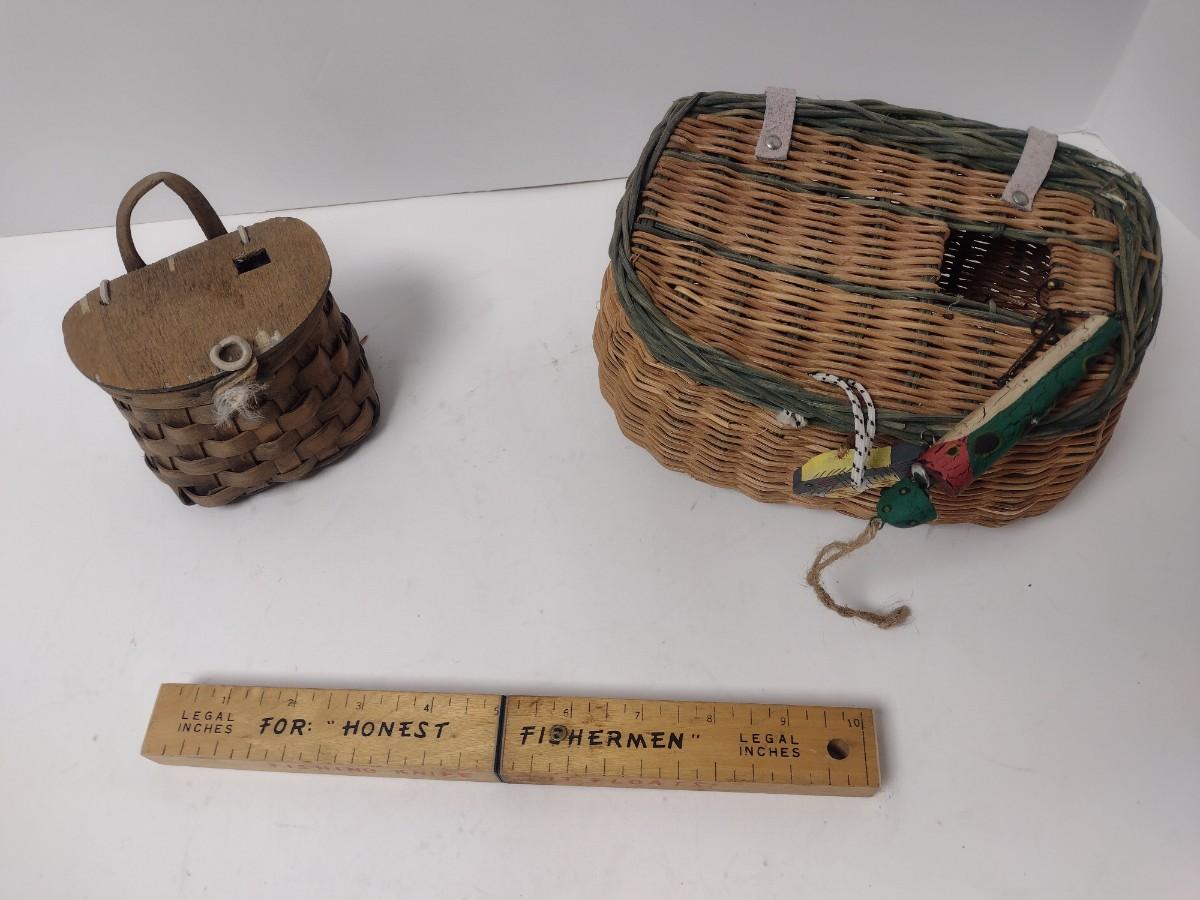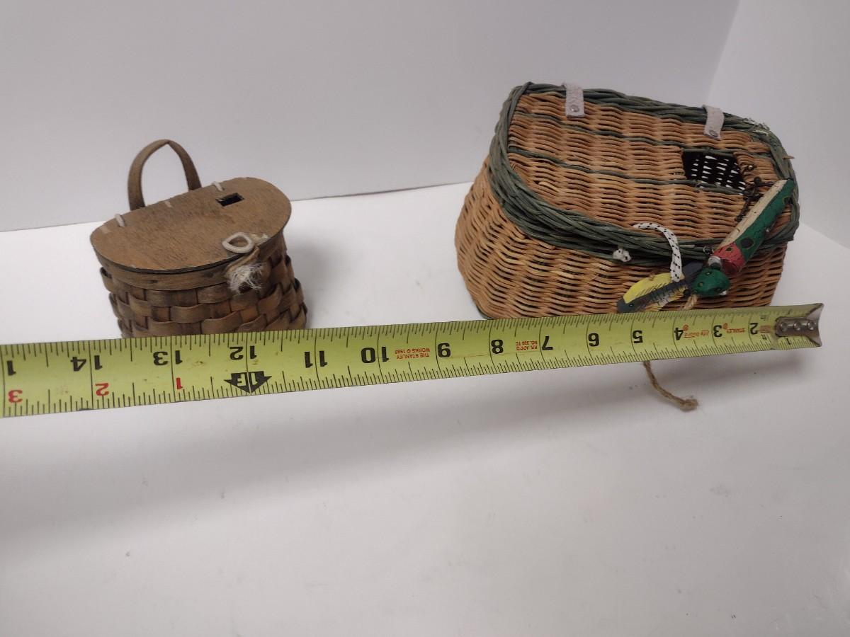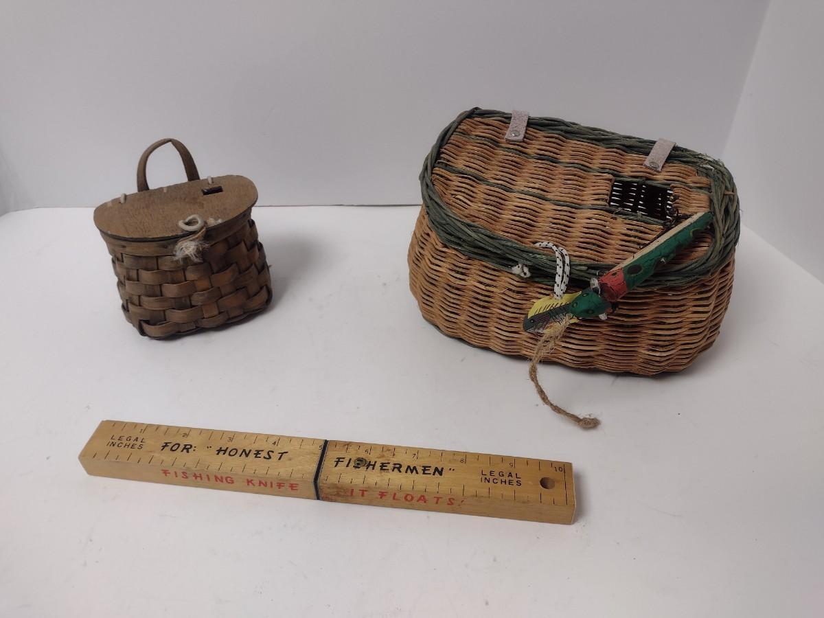 Set of Three Miniature Fishing Creels and Scaling Knife