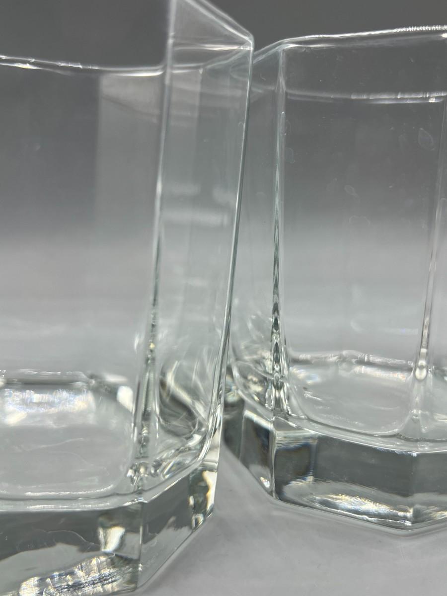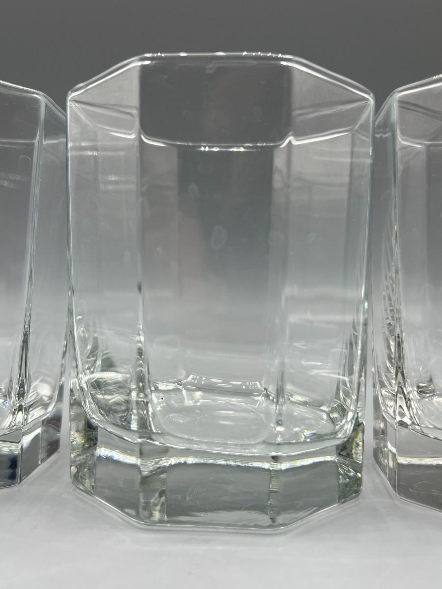 Three Octagon Shaped Heavy Bottom Rocks Drink Glasses. In good condition.