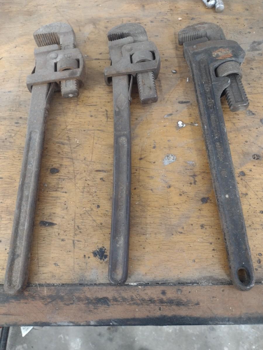 Set of Three of Heavy-Duty Vintage Pipe Wrenches