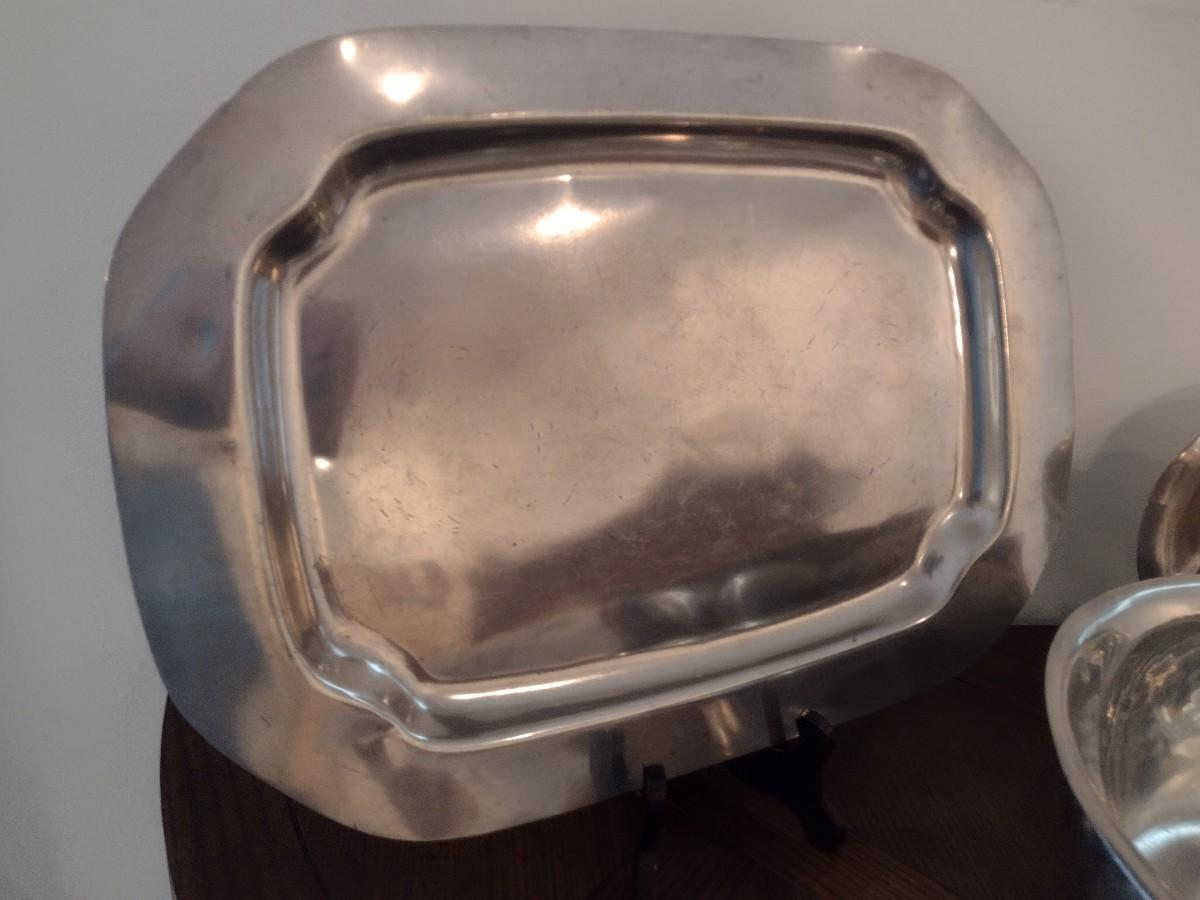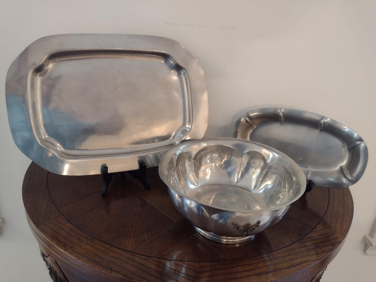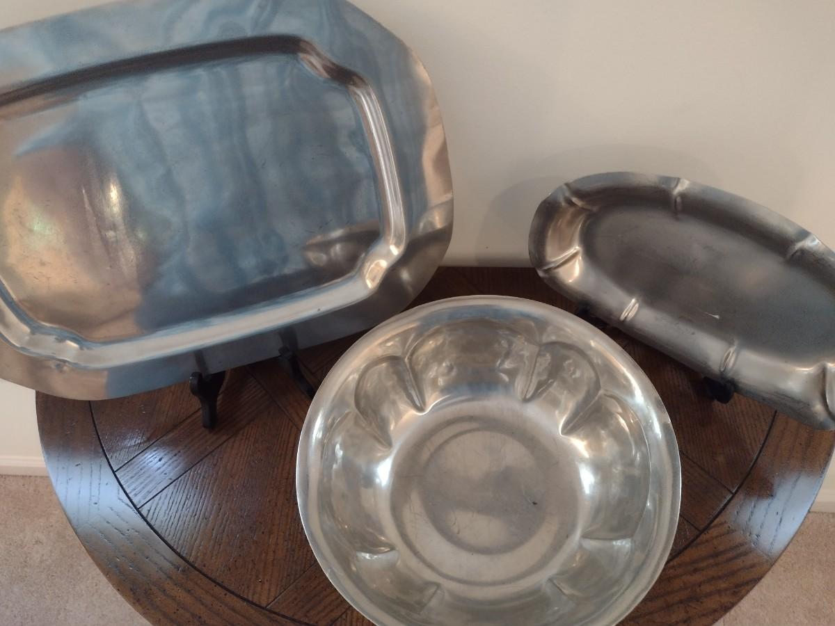 Set of Three Pewter Large Service Pieces includes Trays and Bowl