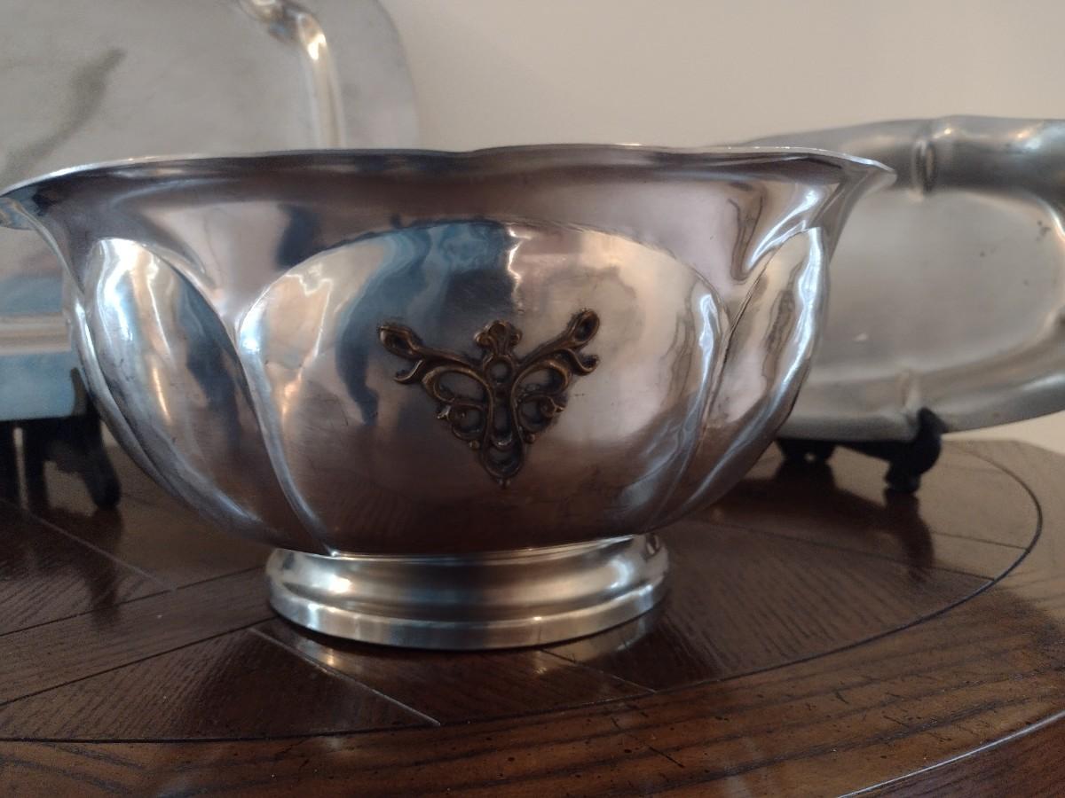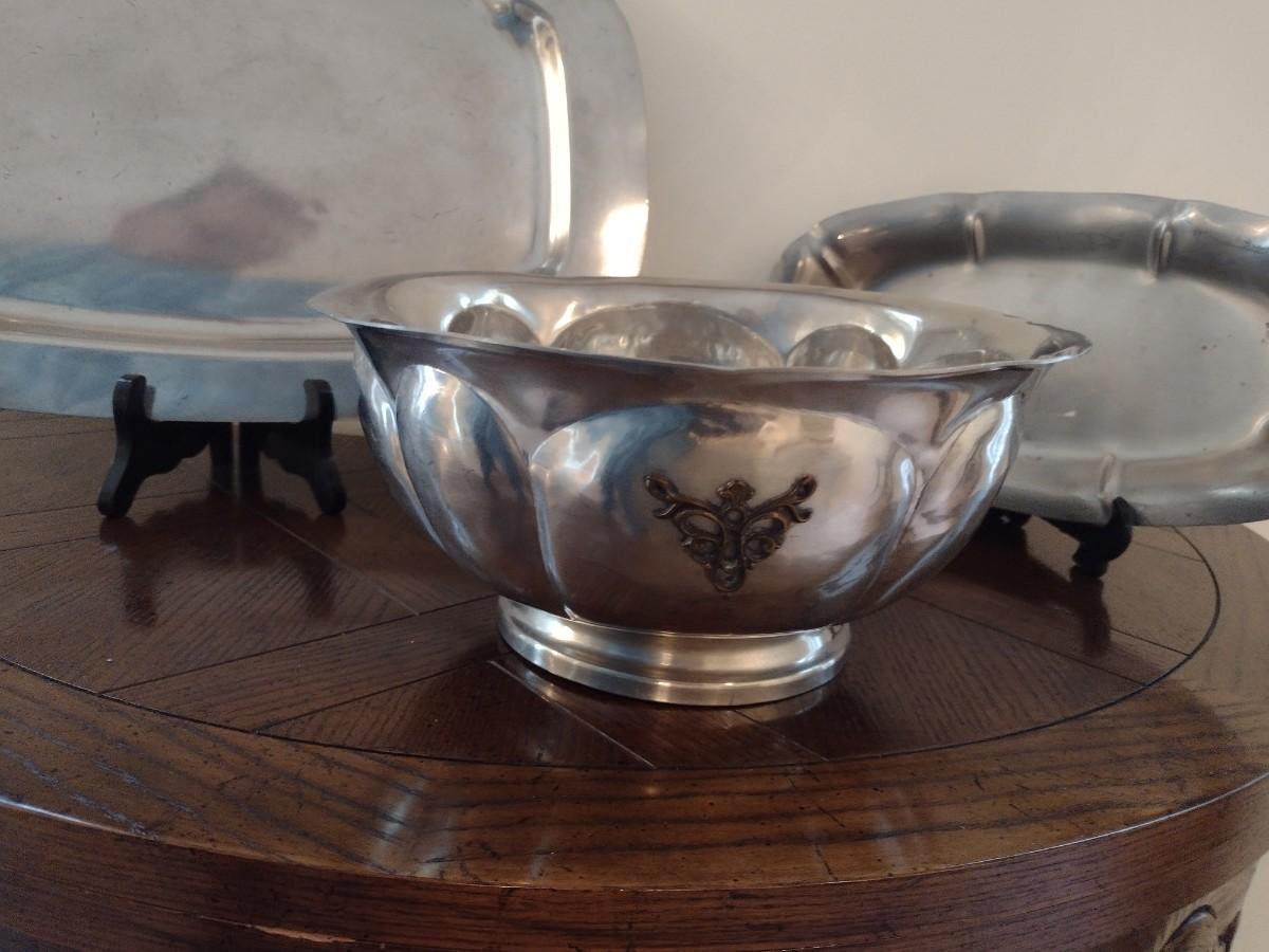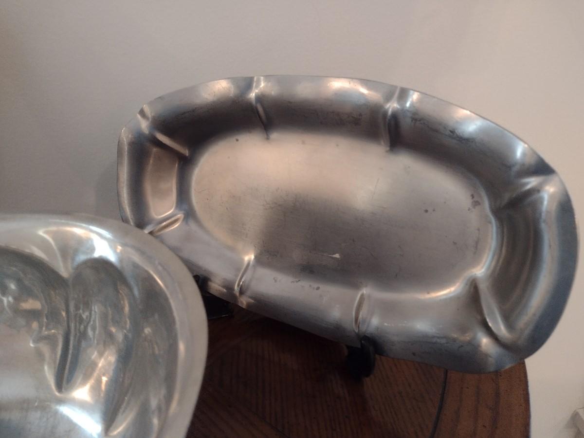 Set of Three Pewter Large Service Pieces includes Trays and Bowl