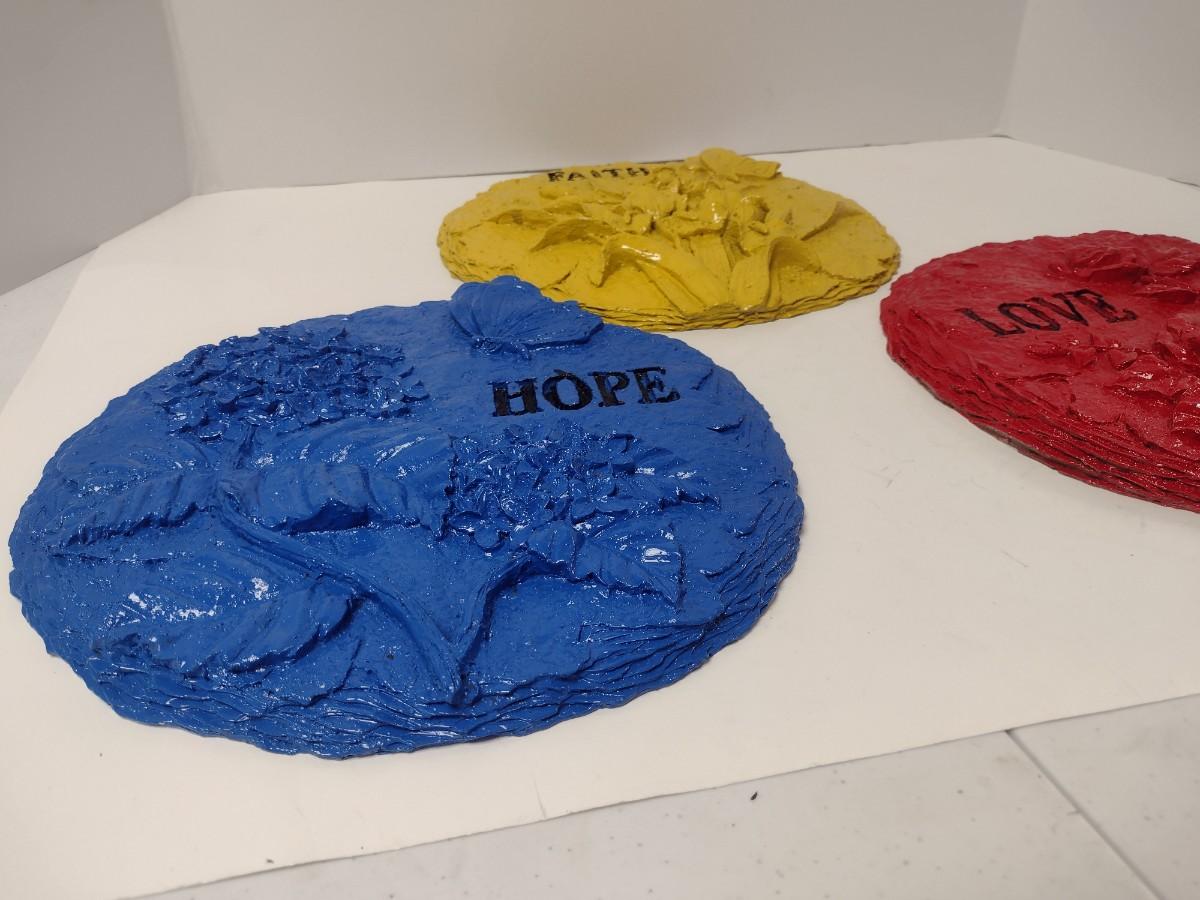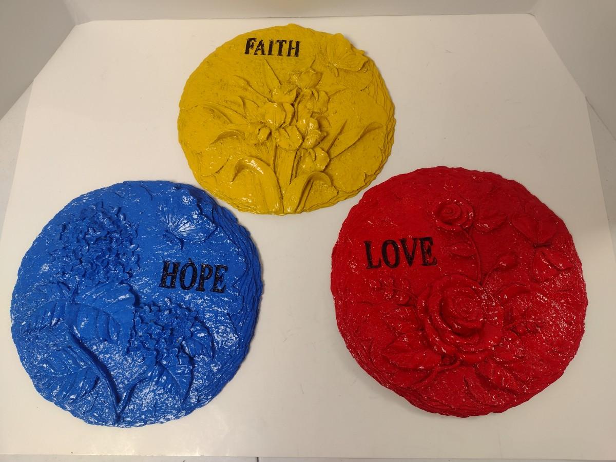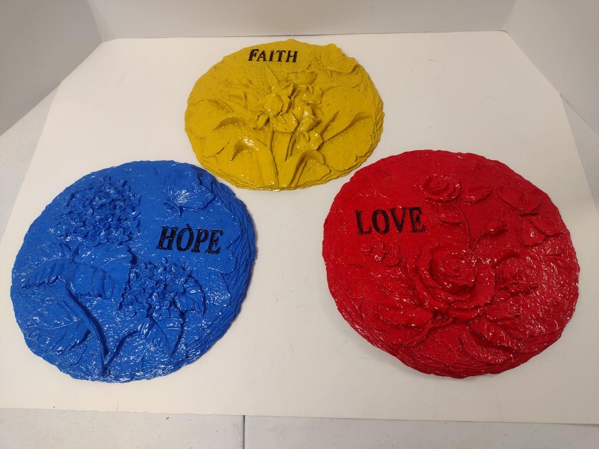 Set of Three Plaster Motivational Wall Decor Faith, Love, Hope