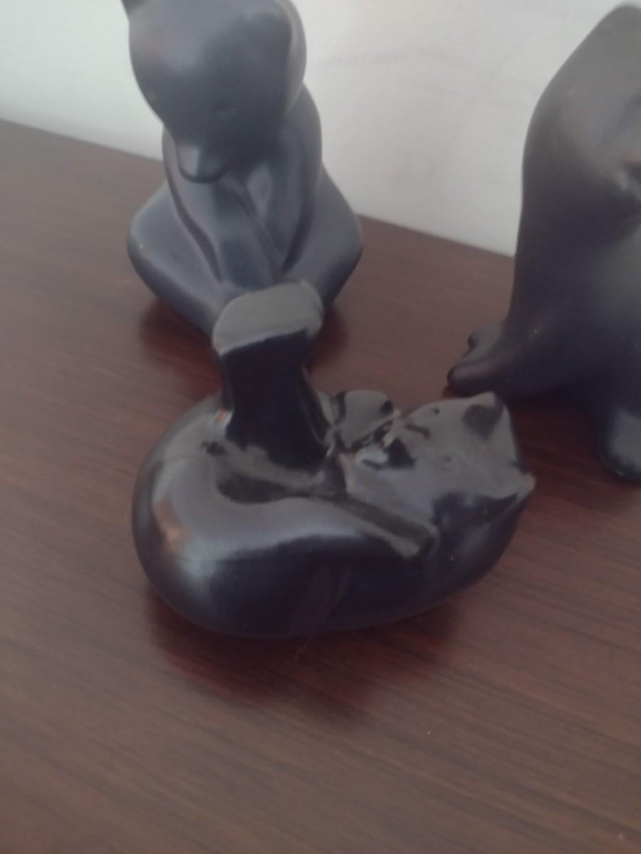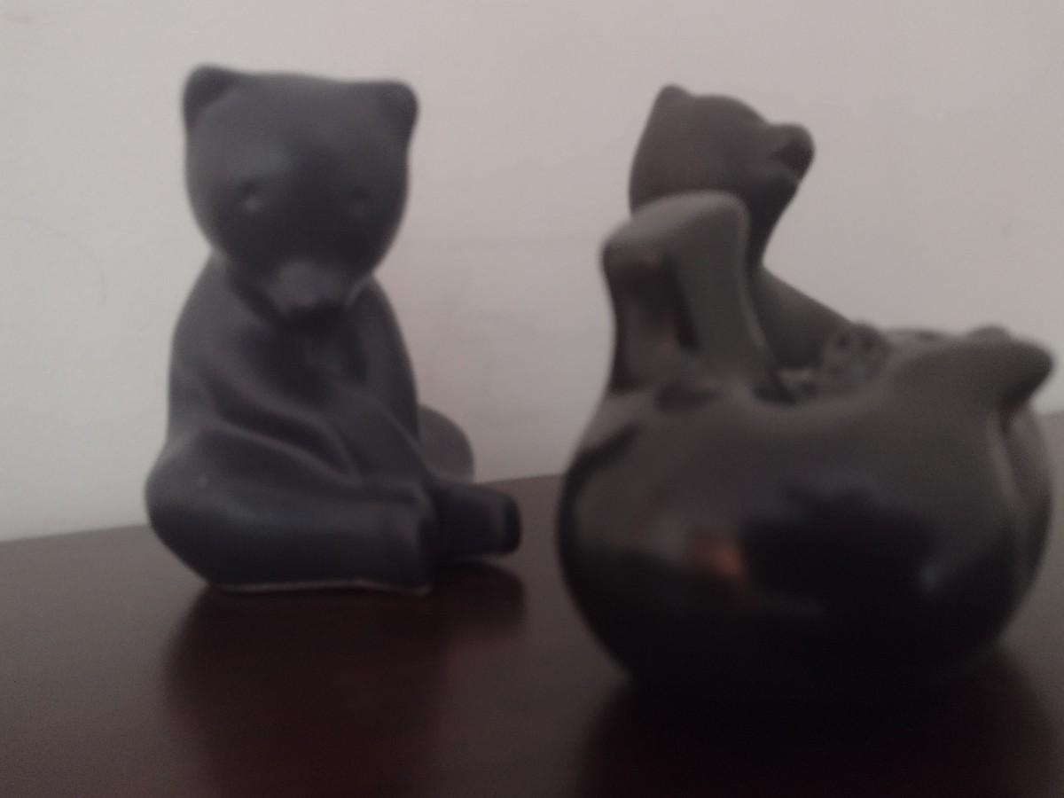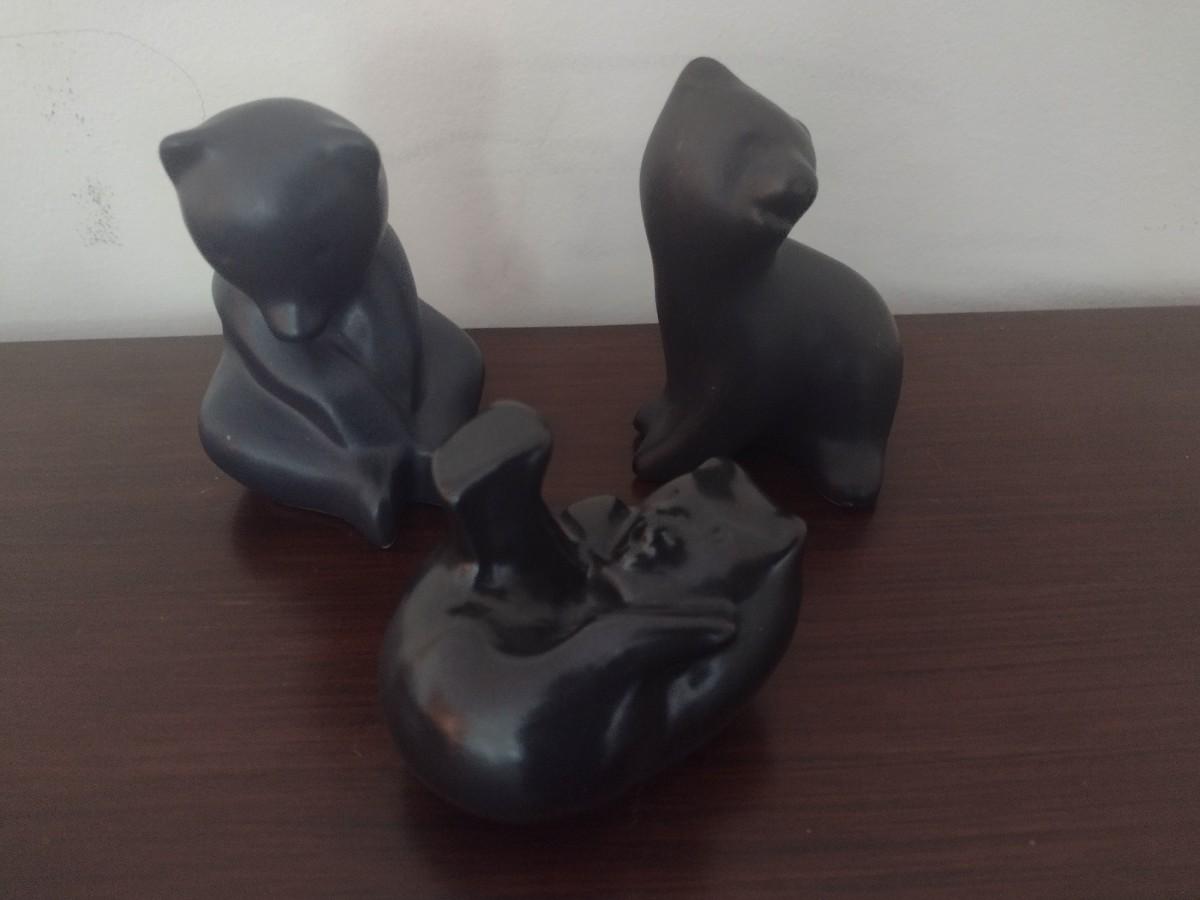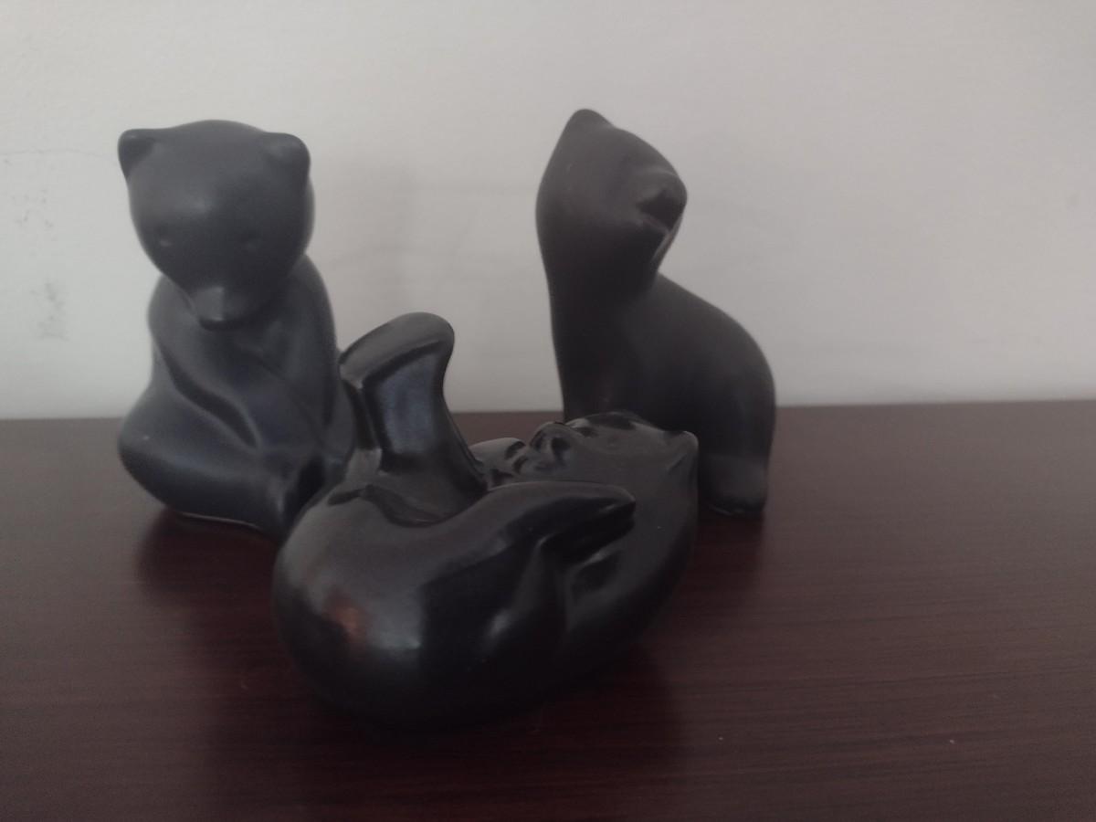 Set of Three Pottery Black Bears by Pigeon Forge Pottery