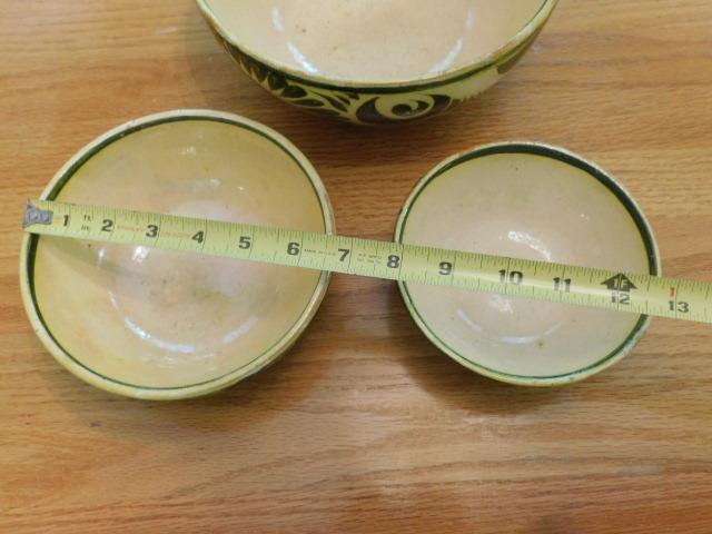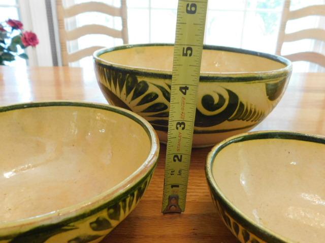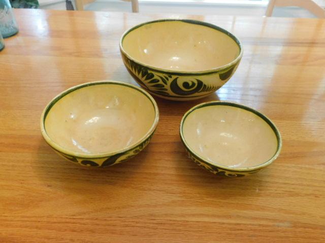 Set of Three Primitive Clay Pottery Hand Painted Stacking Bowls