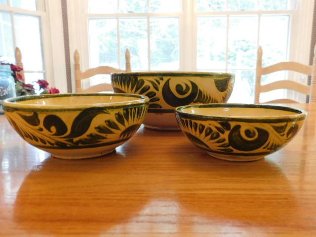 Set of Three Primitive Hand Painted Stacking Bowls no maker mark