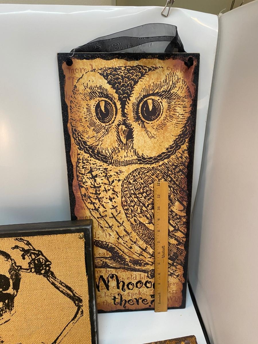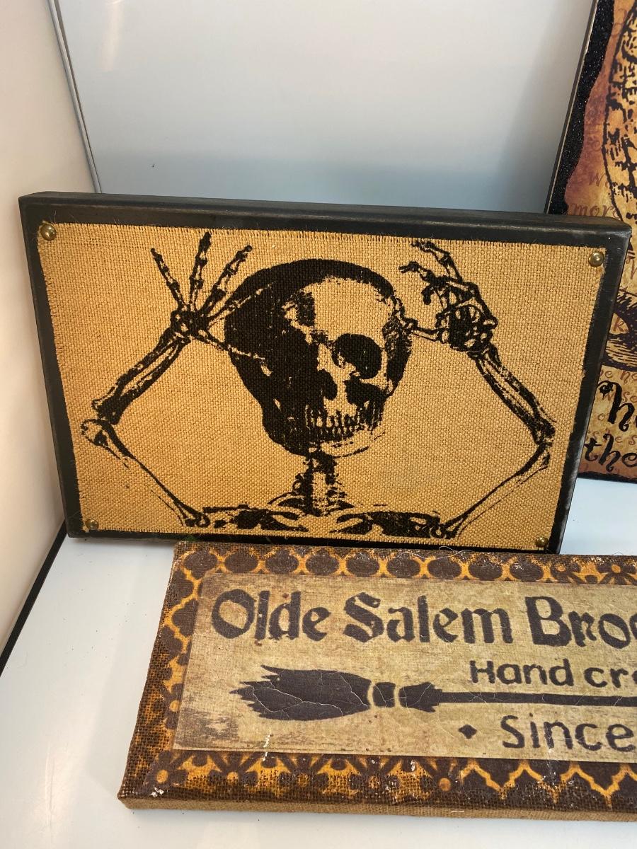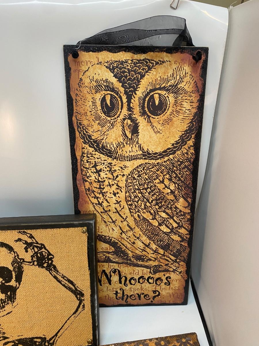 Set of Three Rustic Style Halloween Seasonal Spooky Wall Signs Decor. All in good useable condition. Over 12" sizes.