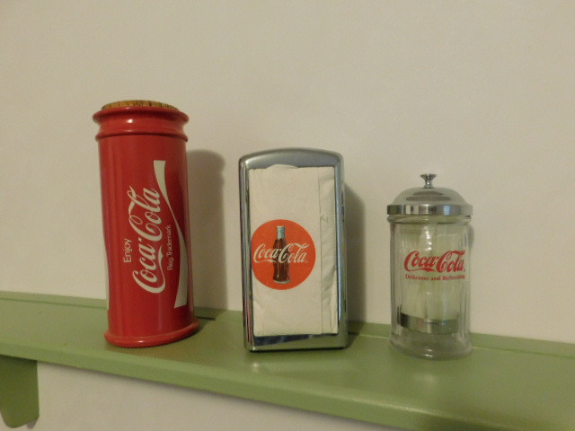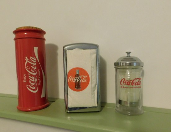 Set of Three Soda Shop Coca Cola Items Napkin Holder, Straw Jar, Cannister