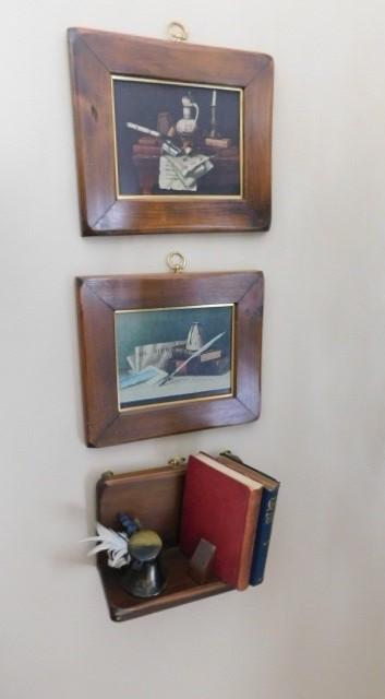 Set of Three Solid Wood Framed Still Art and Shelf Wall Hangers