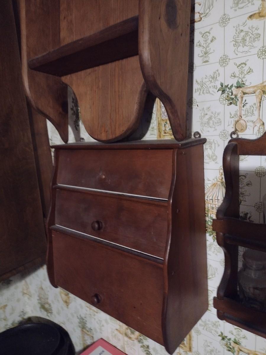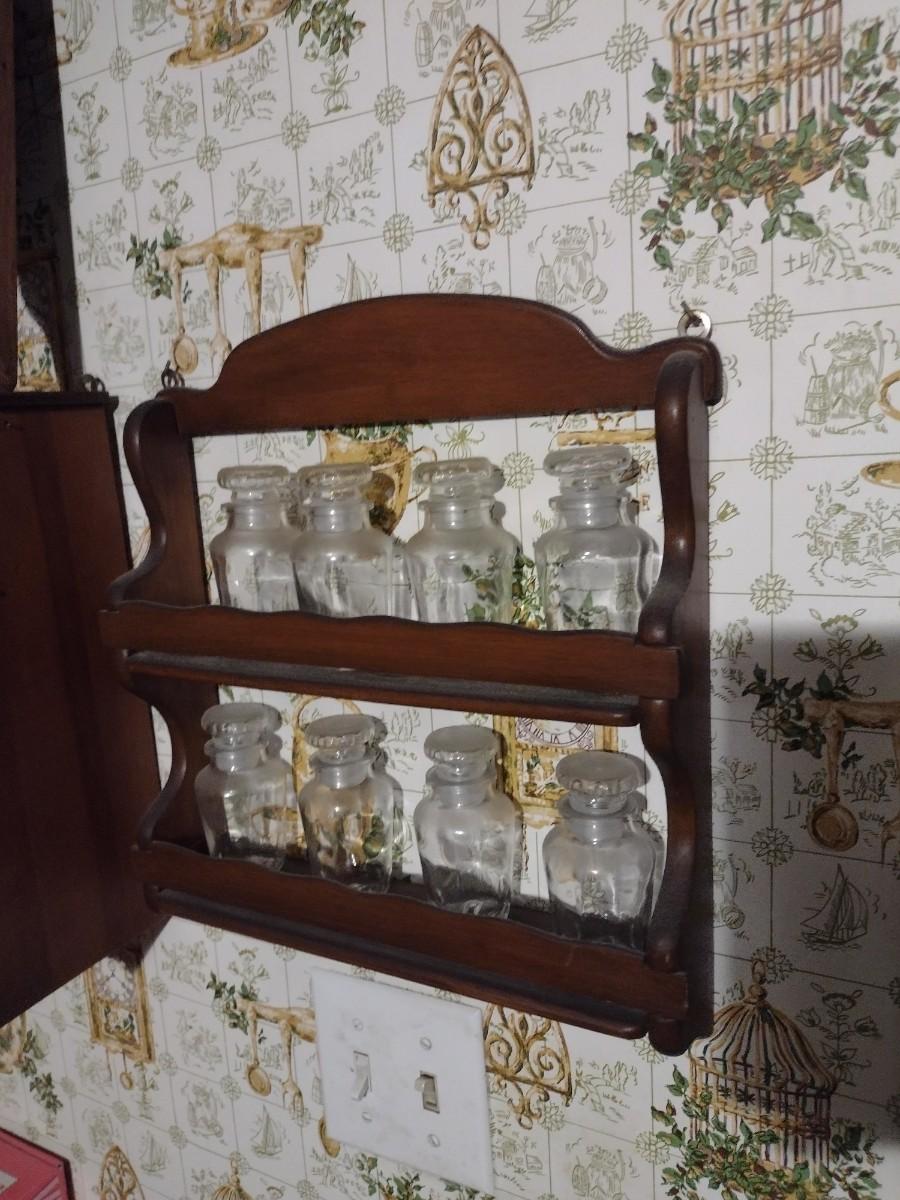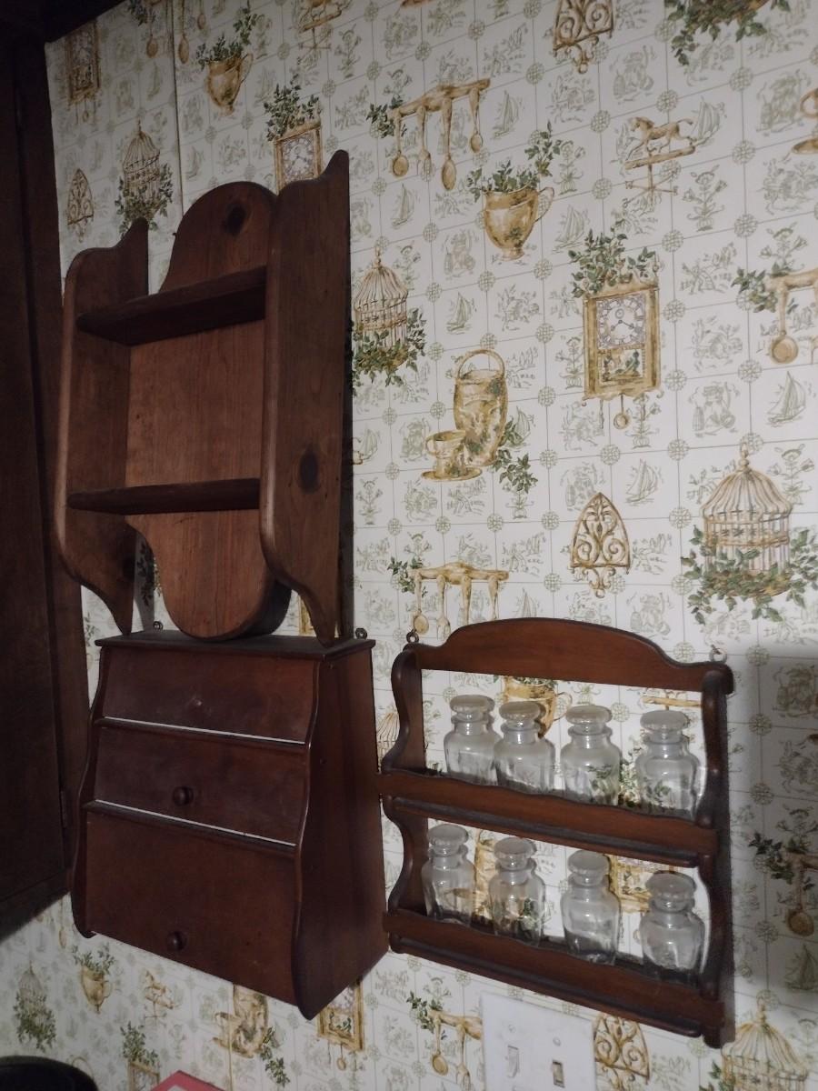 Set of Three Solid Wood Wall Shelf, Spice Rack, Foil Wrap Cabinet