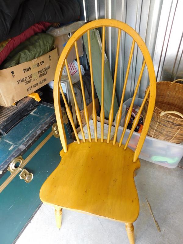 Set of Three Spear Back Yellow Wood Chairs in good condition