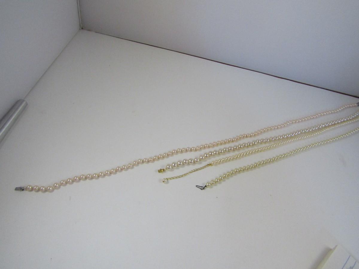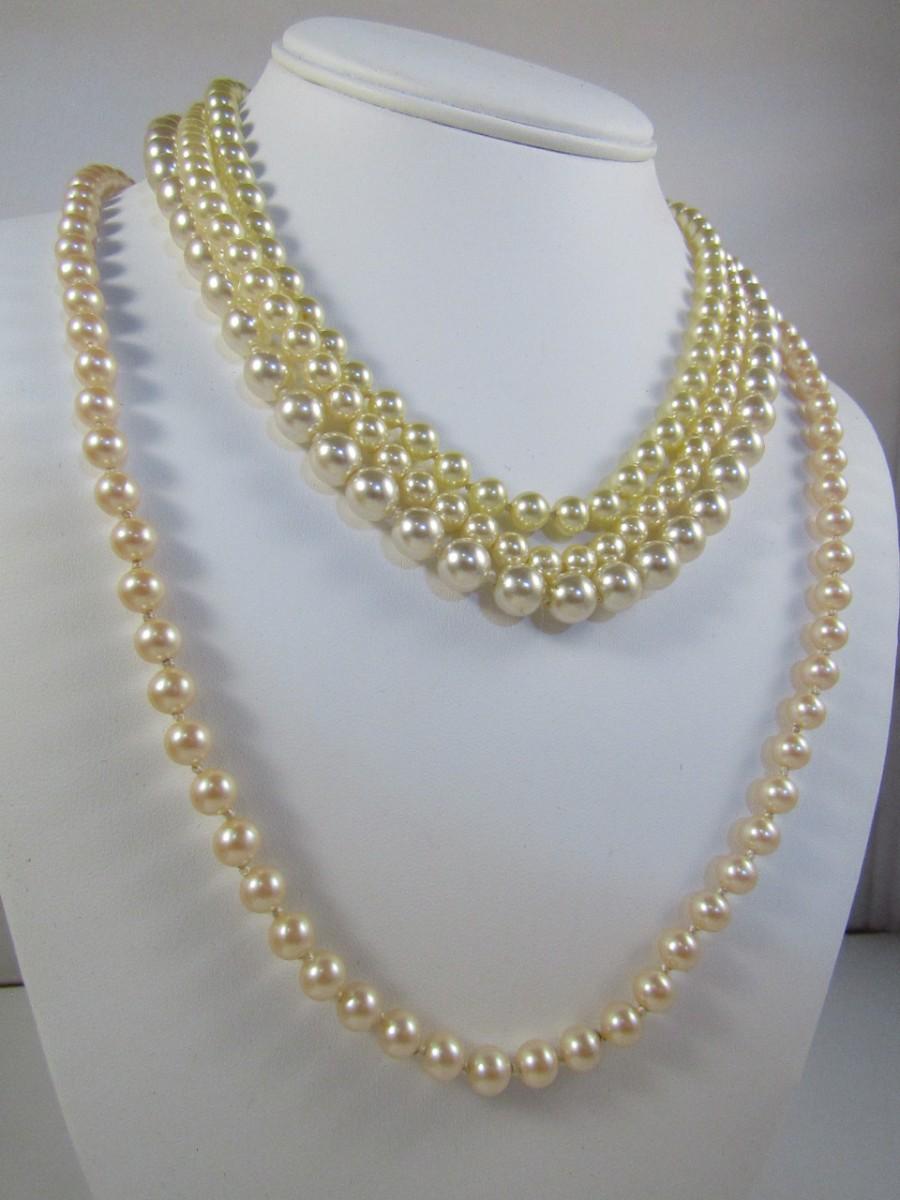 Set of Three Strands of Peart Necklaces Various Lengths and Pearl Sizes