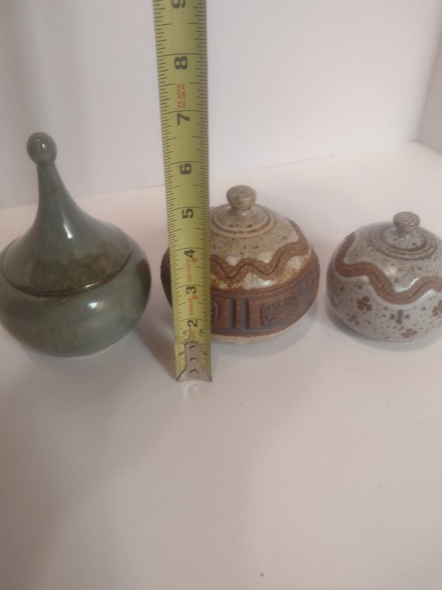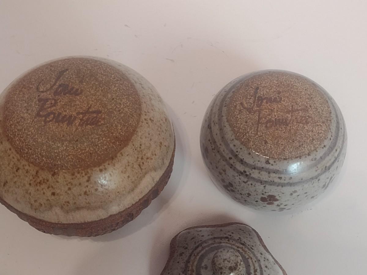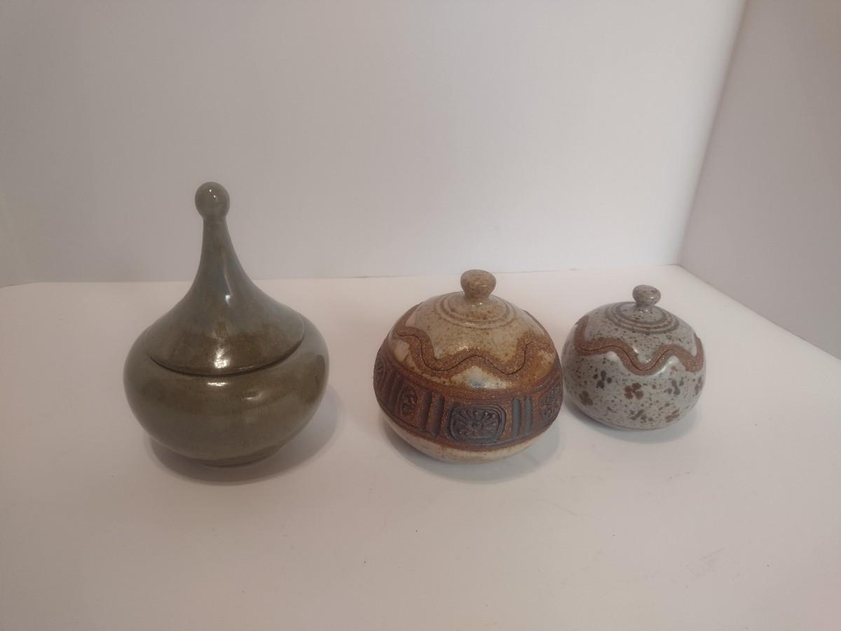 Set of Three Studio Art Pottery Covered Dishes Signed by Artist