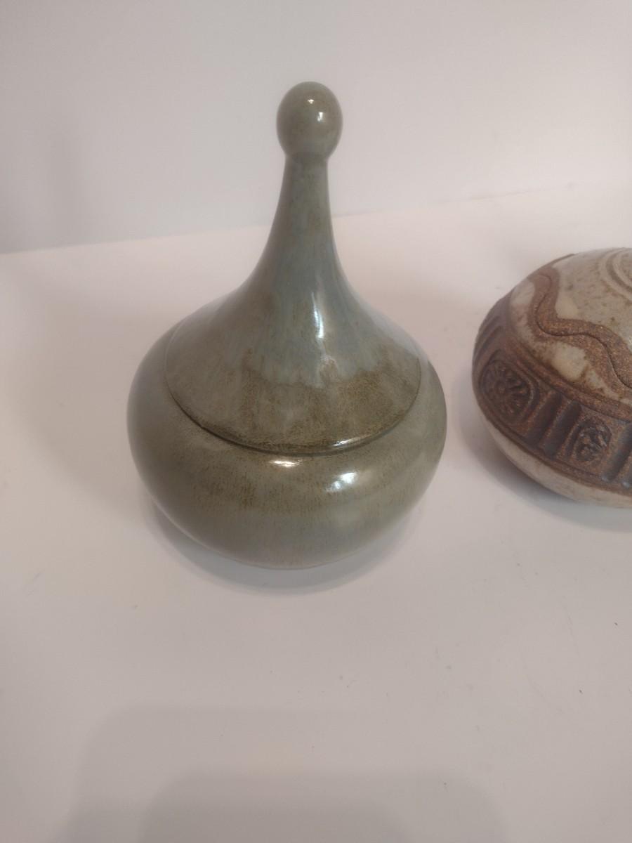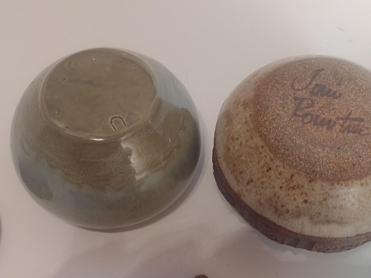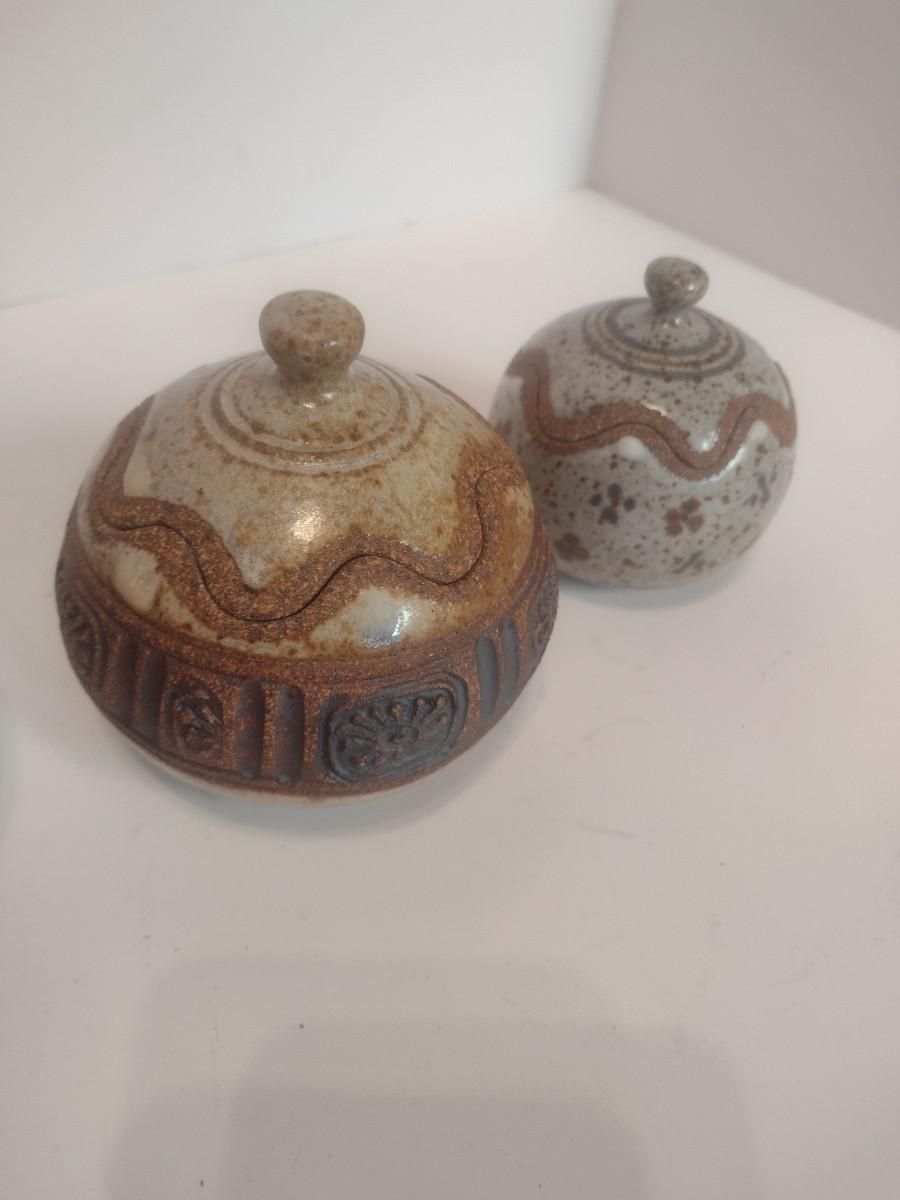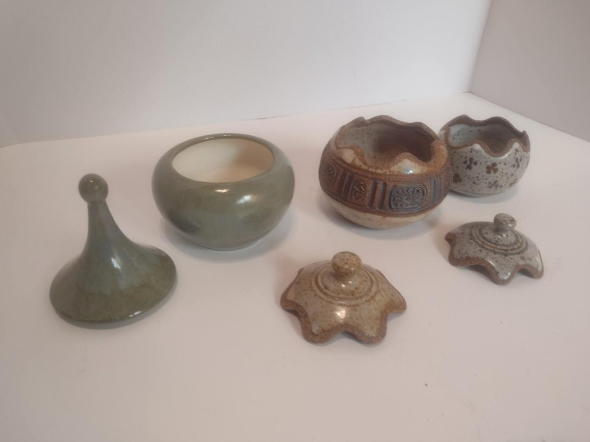 Set of Three Studio Art Pottery Covered Dishes Signed by Artist