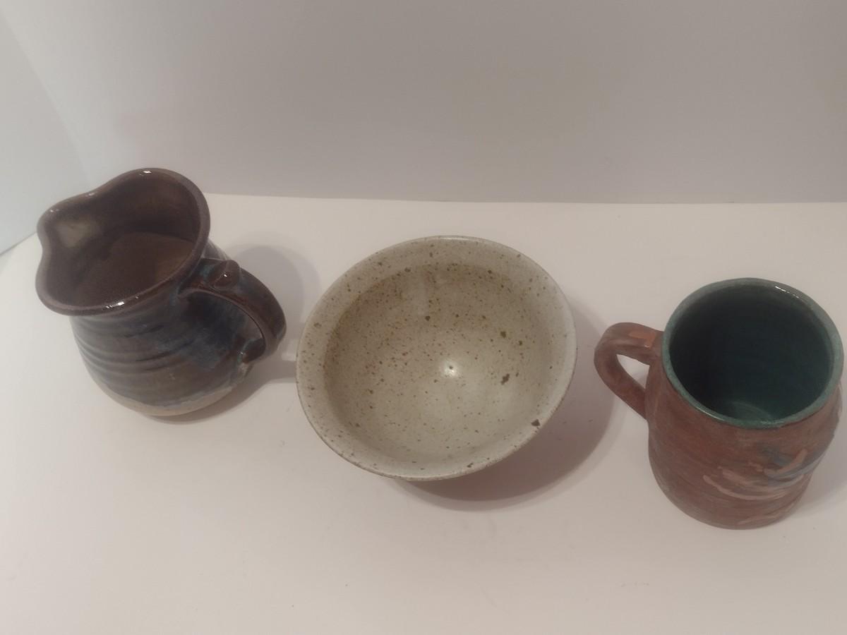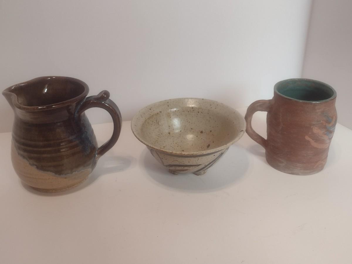 Set of Three Studio Art Pottery Pieces Signed by Artist