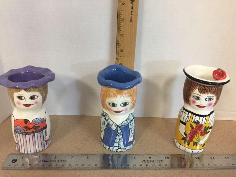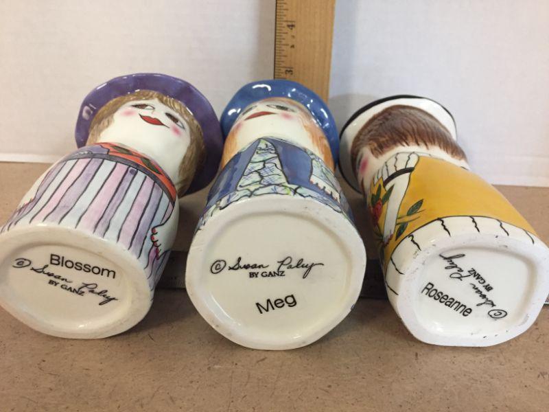 Cute ceramic Lady Vases; Susan Paley by GANZ, featuring Blossom, Meg and Roseanne. Measure approx 5"t x 2"w.