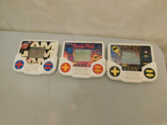Set of Three Tiger Brand Handheld Games Batman, NBA Jam, and Thunder Blade all untested
